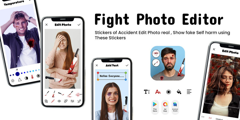 Fight Photo Editor- Android. Add bloody wounds, bruising, blood sprays and fight blood on photo easy and free with awesome Fight Photo Editor.