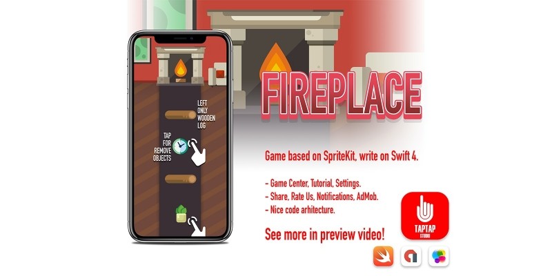 Fireplace - iOS Xcode Project. Tap to objects for remove it, left only wooden log.