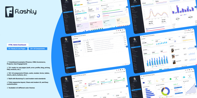 Flashly - Responsive Admin Dashboard Template. Modern responsive admin dashboard template built with HTML, CSS & JavaScript for CRM systems, analytics dashboards, and admin