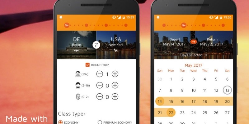 Flight Booking - Android Studio UI Kit. This Flight booking ui kit is made with Android Studio