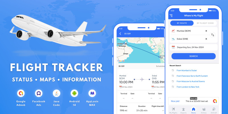 Flight Tracker with AdMob Ads Android . Flight Tracker app allows users to follow aircraft anywhere in the globe by providing worldwide coverage of air traffic data.