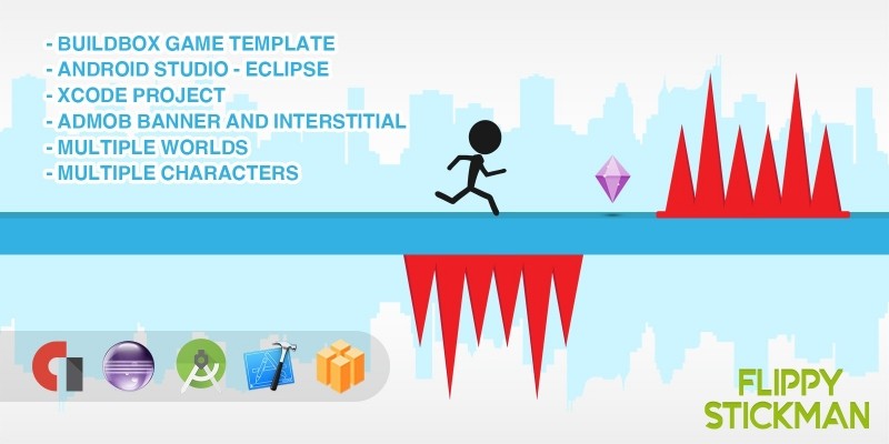 Flippy Stickman - Buildbox Game Template. Flippy Stickman - Android Studio + Eclipse + Xcode + Buildbox Template