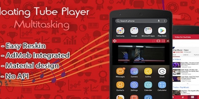 Floating App For Youtube Player - Android Template. Play YouTube music and videos in background
