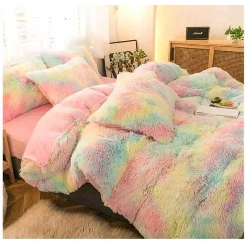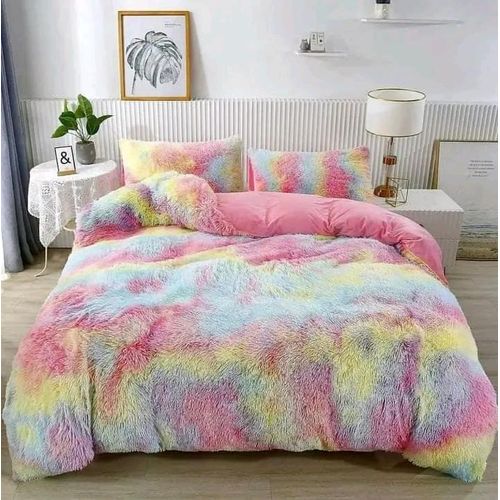Fluffy Duvet cover 6 by 6 Rainbow This fluffy Duvet cover comes with 1 bedsheet and 2 pillowcases, this Duvet would make a perfect statement in your bedroom, it’s warm and gives you a good night’s sleep. Key Features: Fluffy Duvet cover 6 by 6 Rainbow High quality Affordable Size: 6 by 6 Colour: Rainbow Warm