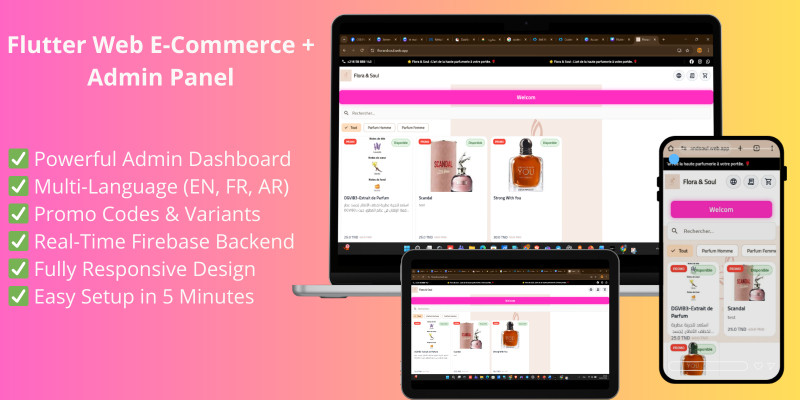 Flutter Web E-Commerce App with Admin Panel. A complete, responsive Flutter Web e-commerce solution with a powerful Firebase admin panel, dynamic variants, and promo codes.