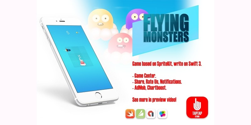 Flying Monsters - iOS Xcode Source Code. You need swipe and dodge rockets. Save your monster! It’s endless game. Catch more coins and open new monsters Watch video previ
