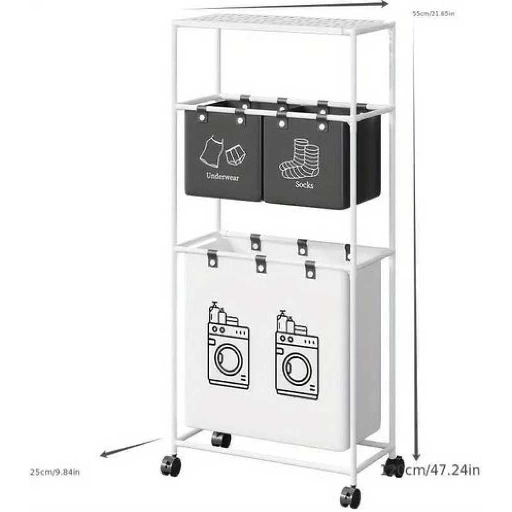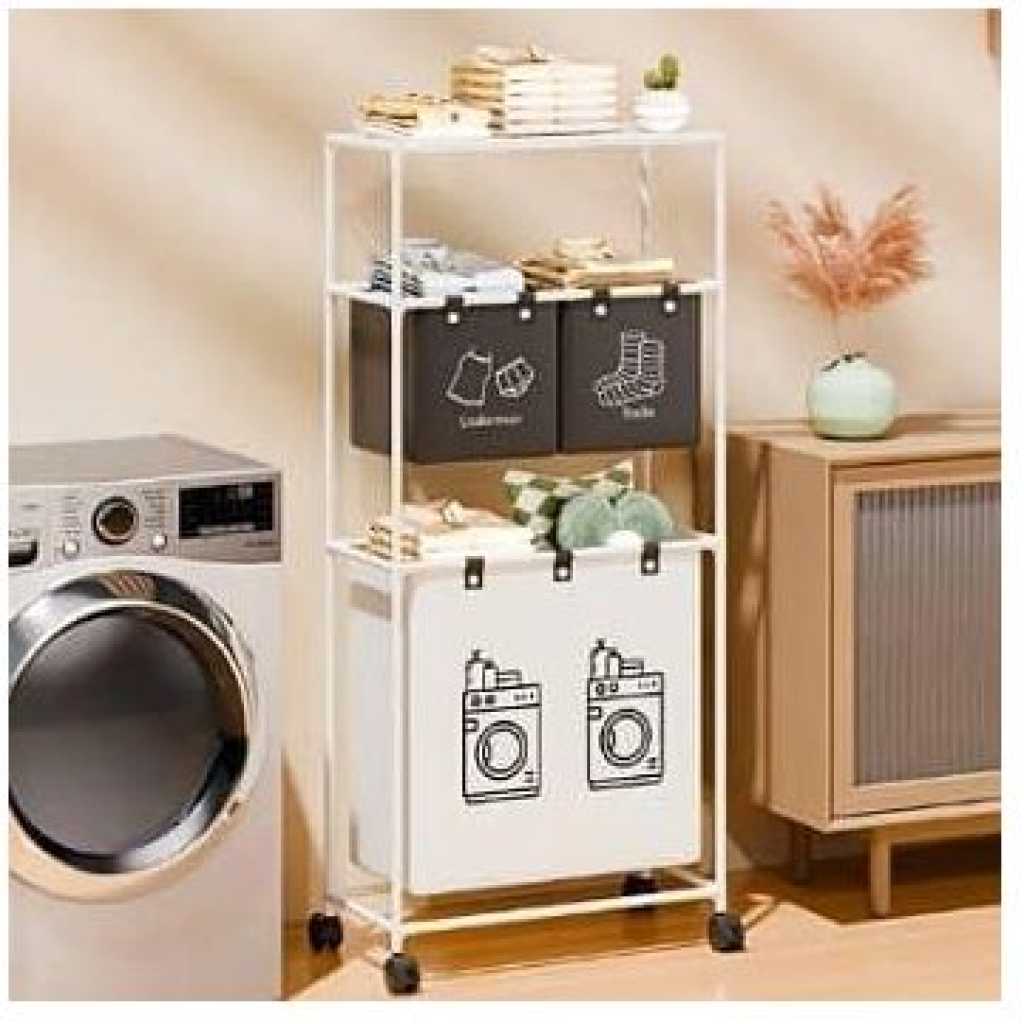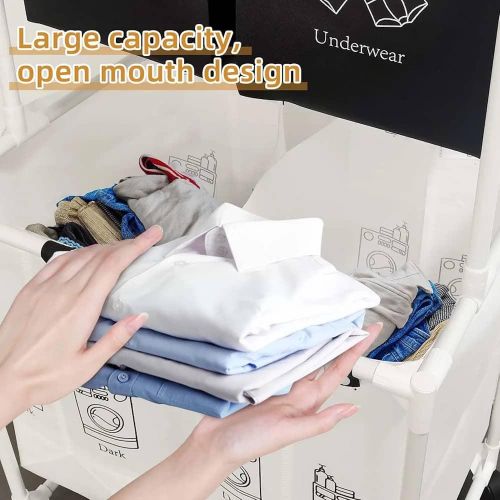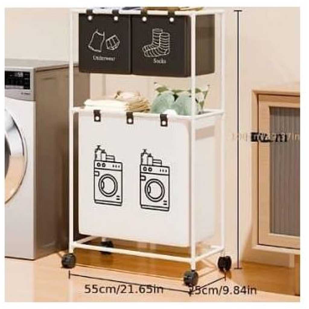 Key Features: Large Capacity Removable Waterproof Laundry Bag:This double laundry basket organizer has a total capacity of 19 gallons (86 liters) and each liner holds 3.5 gallons (15.62 liters) Zonal Dirty Laundry Bag:This double laundry basket organizer has a laundry bag to help you store bedding and clothes separately, and 2 small pockets to categorize small items like socks and underwear Flexible Casters For Easy Assembly:Flexible wheels for smooth transportation of laundry bags to the laundry room. 4 wheels are equipped with locking brakes. Assembly takes approximately 15 minutes according to detailed instructions. Package includes complete laundry sorter accessories and assembly tools. Sturdy And Pragmatic:Made of sturdy PVC material and waterproof cotton linen, this laundry organizer offers reliable strength and stability. The classic design helps prevent unwanted shaking or accidental tipping. Multi-Purpose Large Laundry Basket: This laundry hamper with shelf will fit perfectly into any room, bathroom and bedroom, helping you to hide clutter. It can be used as decoration and fits most home styles.
