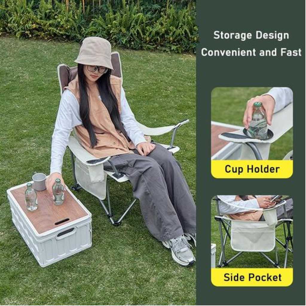 Key Features: [2-Level Reclining Backrest]This portable camp chair can be tilted to 100°/160° to satisfy different backrest positions, which allows you to sit or recline to enjoy a comfortable time.