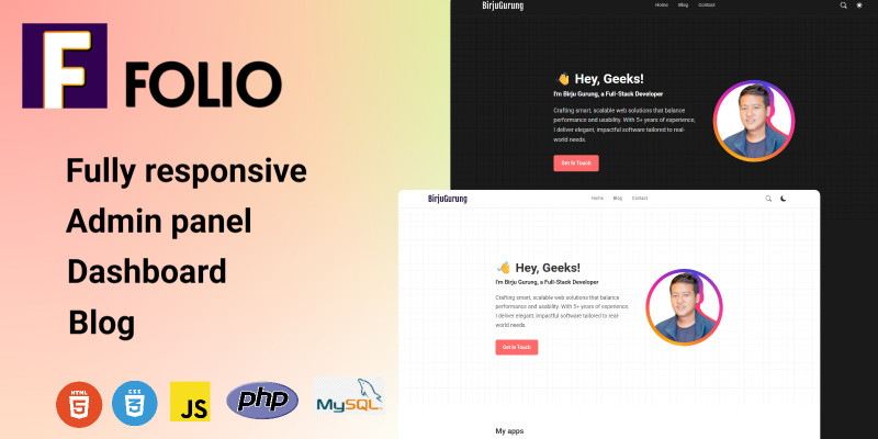 Folio - Portfolio Website with Admin Panel. A user-friendly and fully responsive portfolio website.