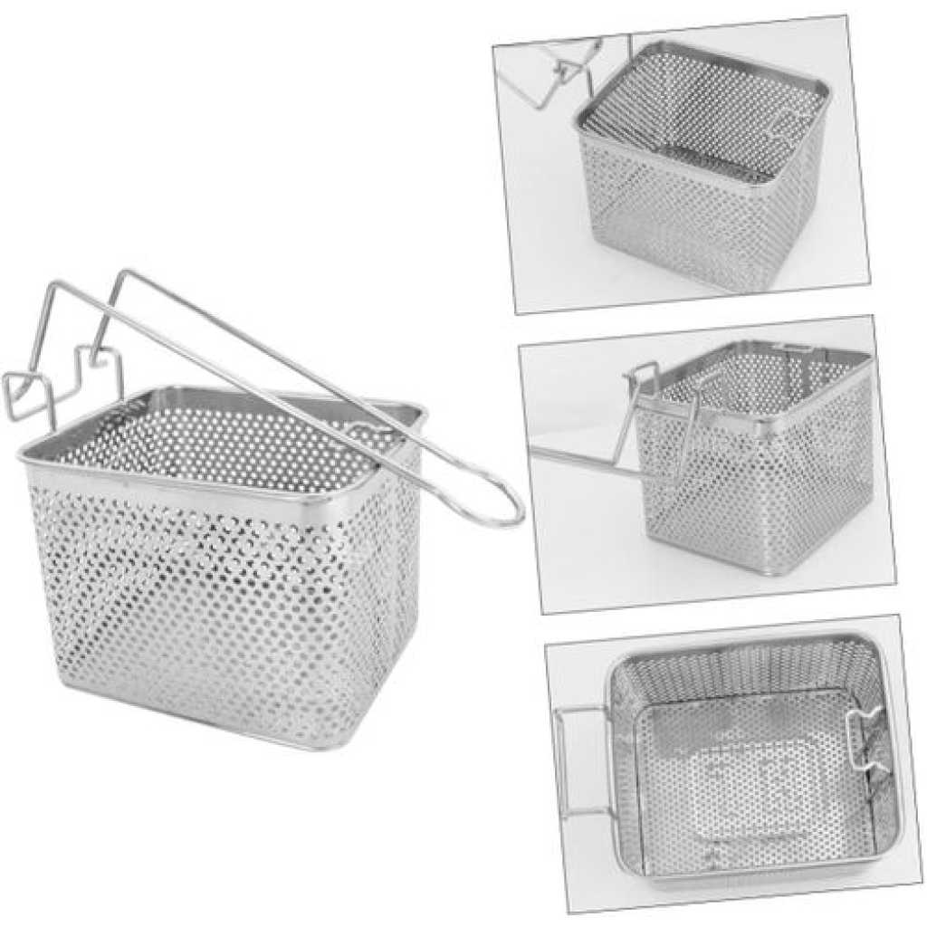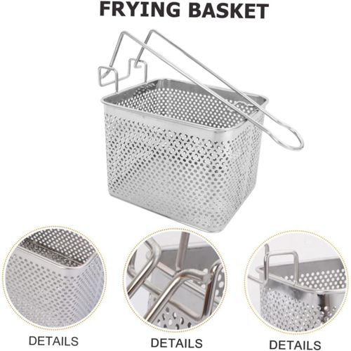 1 x frying basket Features -Color: Silver Frying Basket Strainer -Material: Stainless steel Stainless Steel Fry Basket – Size: 20.00X14.00X15.00cm;/7.86X5.50X5 Deep Fry Basket Strainer. Goods Information french fries basket This basket can be widely for frying many foods, and practical.stainless steel frying basket This frying basket is made of stainless steel material, safe and durable, and use, washable and reusable.chips frying strainer The basket can dive right into the fryer and create something delicious
