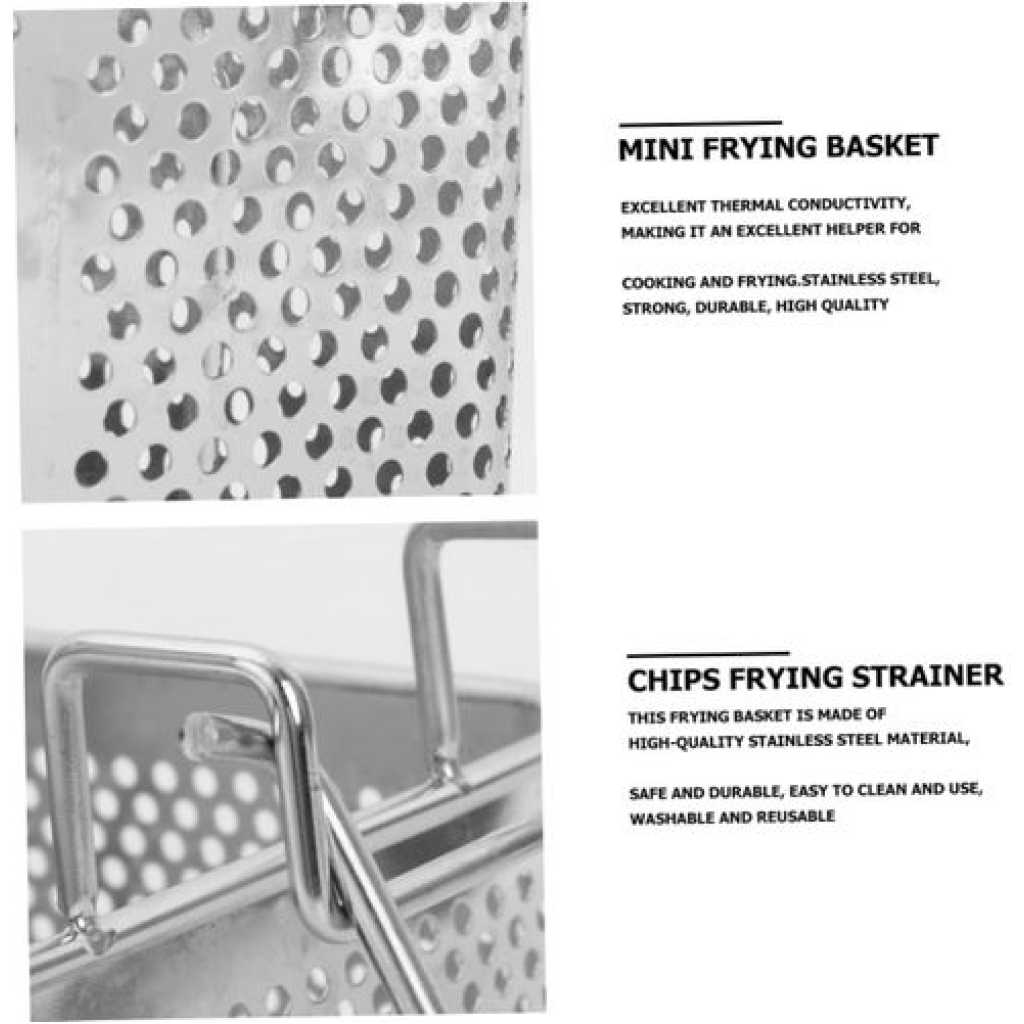 Key Features: DEEP FRYER BASKET AIR FRYER MESH BASKET FISH FRY BASKET SMALL FRYER BASKET FRENCH FRY SERVING BASKET FRYER BASKETS WIRE BASKET FOR DEEP FRYING FRYING BASKET FOOD COLANDER MESH DEEP FRY BASKET STRAINER STAINLESS STEEL– The circular and evenly distributed drain hole can drain french fries basket oil quickly and clean. SMALL FRYER BASKET– Frying Basket Excellent thermal conductivity, making it an excellent helper for cooking and frying. AIR FRYER MESH BASKET– potatoes frying basket Excellent thermal conductivity, making it an excellent helper for cooking and frying. FRYING BASKET– handle stay cool to the touch. STAINLESS STEEL SKIMMER– The handle that can be easily disassembled french fries basket is convenient for storage and does not take up more space.