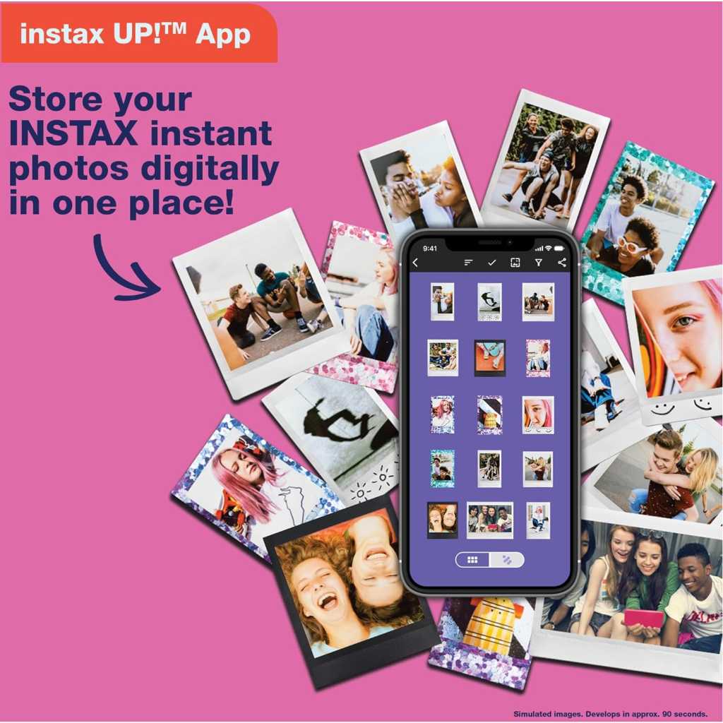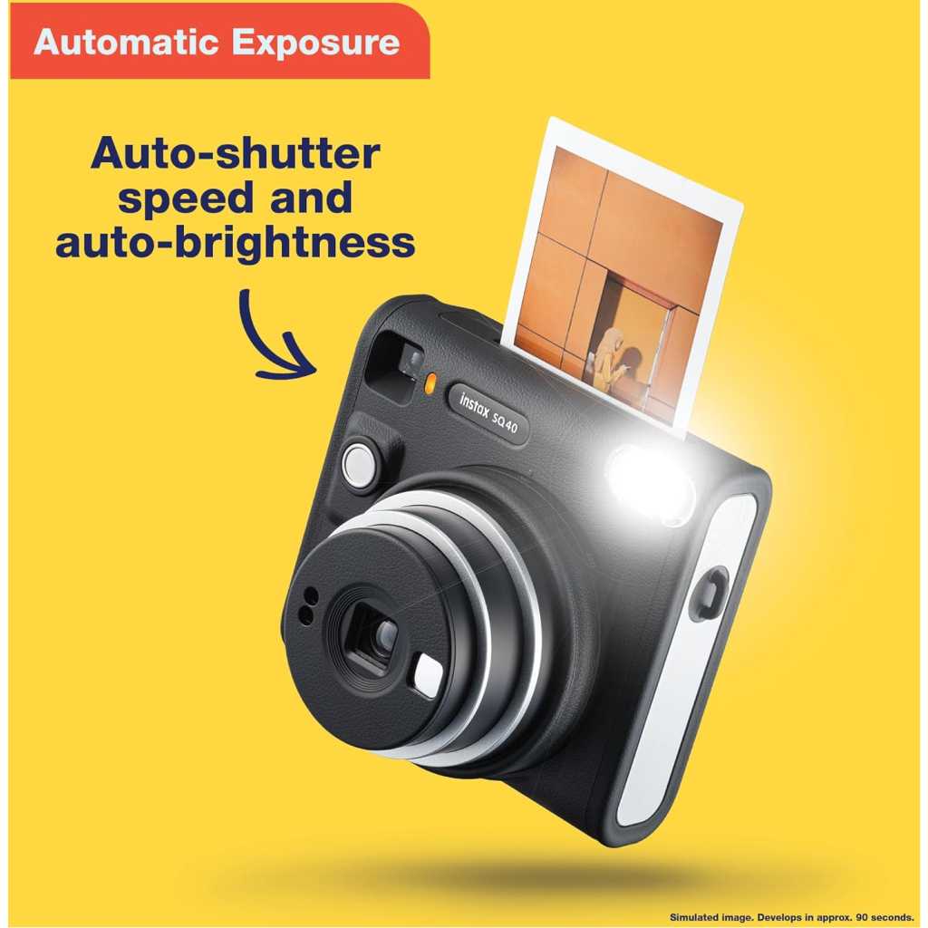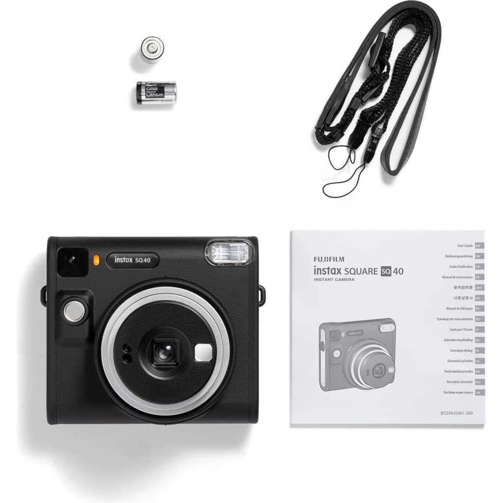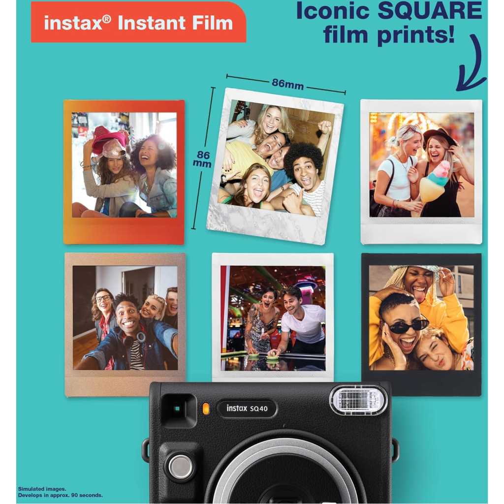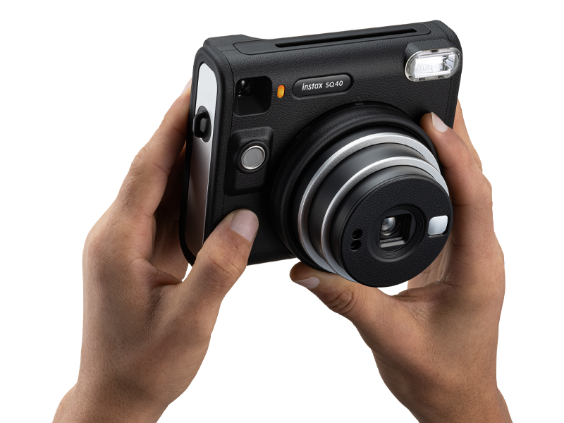 Fujifilm Instax Square SQ40 Instant Camera. Square, sophisticated design with black textured finish. Simply twist to turn on and off Built-in Automatic exposure, for ideal photos every time Built-in one-touch selfie lens and selfie mirror Prints high-quality, 3.39” x 2.83” INSTAX SQUARE instant photos (INSTAX SQUARE instant film sold separately) Includes: Hand strap, user manual, (2) CR2 batteries and 1-year limited warranty Spark unique moments of creativity with the INSTAX SQUARE SQ40™ instant camera – a chic instant camera that looks as good as it shoots. That’s right, it’s got a sophisticated black textured finish that’ll go with any style. And it’s remarkably easy to operate, helping you capture beautiful INSTAX SQUARE instant photos, every time. In fact, when it came to designing the square silhouette, we had only the boldest in mind. We added the feel of analog photography to bring you a timeless look that’ll only enhance your unique flair. Plus, by making the INSTAX SQUARE SQ40 camera wonderfully versatile, it’s always ready for all your creative moments. Simply twist to turn on, twist to enter Selfie mode and twist to turn off. And with automatic exposure, expressing your creativity really couldn’t be easier; whether you’re behind the camera or framing yourself in the selfie mirror ready for a close-up. Just point and shoot and let the INSTAX SQUARE SQ40 camera do the rest! INSTAX SQUARE instant film sold separately. Key Features: Fujifilm Instax Square SQ40 Instant Camera. Square, sophisticated design with black textured finish. Simply twist to turn on and off Built-in Automatic exposure, for ideal photos every time Built-in one-touch selfie lens and selfie mirror Prints high-quality, 3.39” x 2.83” INSTAX SQUARE instant photos (INSTAX SQUARE instant film sold separately) Includes: Hand strap, user manual, (2) CR2 batteries and 1-year limited warranty