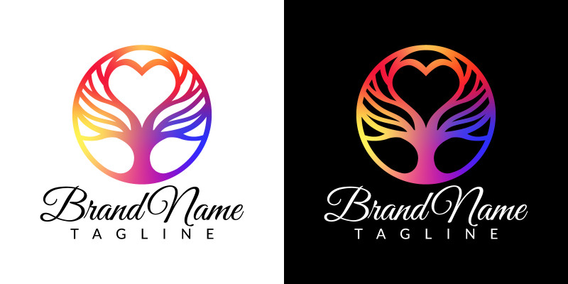 Futuristic Elegant Tree Logo Design Love Tree Logo. Modern futuristic elegant tree logo, heart shape love tree logo, Nature Logo, creative colorful logo, nature landscape, illusion