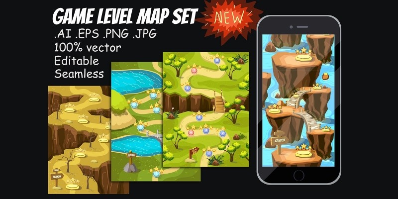 Game Level Map Concept Set . Game Level Map Set! . You can use this maps for a game or application project. 100% vector. You can edit it using Adobe Illustrato