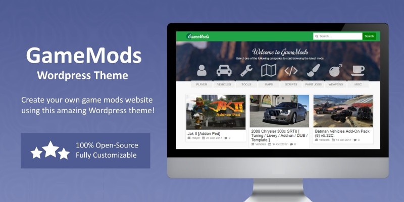 GameMods Theme - Game Modding Wordpress Theme. Create your own game mods website using this beautiful Wordpress Theme.