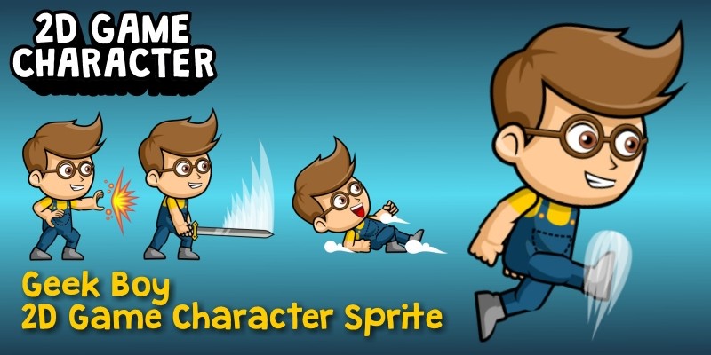 Geek Boy 2D Game Character Sprite. Best assets for game like: Shooting game, Running Game,Platform Game, and more side Scrolling games.​