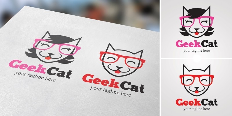 Geek Cat - Male And Female Logo. Editable Logo Template