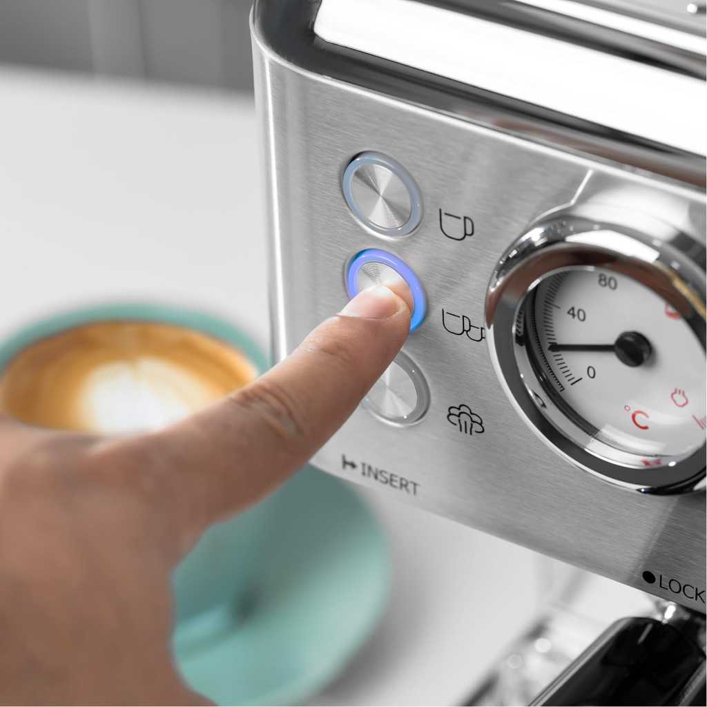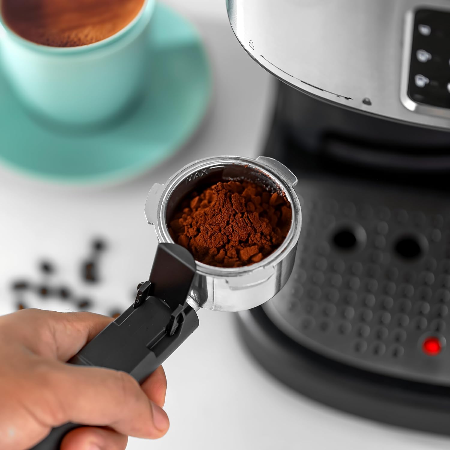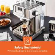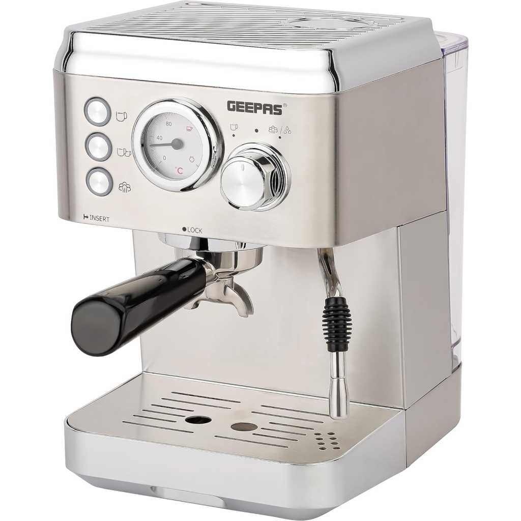 Say hello to the most advanced coffee machine with smart features and efficient performance. The Geepas espresso and cappuccino coffee maker is meticulously crafted to elevate your coffee experience to new levels. With a powerful 20 bar pressure system, this coffee machine will deliver robust and flavorful coffee shots every time. It has a strong and sturdy construction with a die-cast aluminum alloy boiler for efficient heat distribution for the best coffee extraction. It also has a generous 1.8-liter detachable transparent water tank, which allows you to easily estimate the water level and refill when needed. Dual stainless steel filters ensure that you can easily brew espresso shots with ease. The high-pressure frothing function creates creamy, foamy, and velvety foam for your cappuccinos and lattes. In addition, the adjustable steam knob allows you to control the steam pressure to customize it according to your needs. It also has overheating and overpressure protection to ensure utmost safety. The machine is also easy to clean and maintain. With its stylish white metallic design, this machine is a wonderful gift for any coffee lover, whether at home, in a caf, or in the office. The machine weighs 4.75 kg and comes with a 2-year manufacturer’s warranty. STURDY CONSTRUCTION: The Geepas espresso and cappuccino coffee machine has a sturdy construction with a die-cast aluminum alloy boiler for even heat distribution. LARGE WATER TANK: The 1.8-liter detachable transparent water tank allows you to easily estimate the water level and refill when needed. HIGH PRESSURE FROTHING: With a powerful 20-bar pressure system, this coffee machine will deliver robust and flavorful coffee shots every time. The high-pressure frothing function creates creamy, foamy, and velvety foam for your cappuccinos and lattes. MULTIPLE FEATURES: The adjustable steam knob allows you to control the steam pressure to customize it according to your needs. It also has overheating and overpressure protection to ensure utmost safety. DUAL FILTER: The 1 and 2 cup dual stainless steel filters ensure that you can easily brew espresso shots with ease. AC 220-240V 50/60 Hz 1100W PRODUCT WEIGHT: 4.75 KG INCLUDES A 2-YEAR MANUFACTURES WARRANTY. Over heating and over pressure protected device Detachable drop tray for easy cleaning Adjustable steam knob Key Features: Geepas 20 Bar Espresso and Cappuccino Coffee Machine- GCM1523SS | Die-Cast Aluminum Boiler and 1.8 L Detachable Water Tank| Makes Cappuccino, Lattes, Espresso. ✅STURDY CONSTRUCTION: The Geepas espresso and cappuccino coffee machine has a sturdy construction with a die-cast aluminum alloy boiler for even heat distribution. ✅LARGE WATER TANK: The 1.8-liter detachable transparent water tank allows you to easily estimate the water level and refill when needed. ✅HIGH PRESSURE FROTHING: With a powerful 20-bar pressure system, this coffee machine will deliver robust and flavorful coffee shots every time. The high-pressure frothing function creates creamy, foamy, and velvety foam for your cappuccinos and lattes. ✅MULTIPLE FEATURES: The adjustable steam knob allows you to control the steam pressure to customize it according to your needs. It also has overheating and overpressure protection to ensure utmost safety. ✅DUAL FILTER: The 1 and 2 cup dual stainless steel filters ensure that you can easily brew espresso shots with ease.