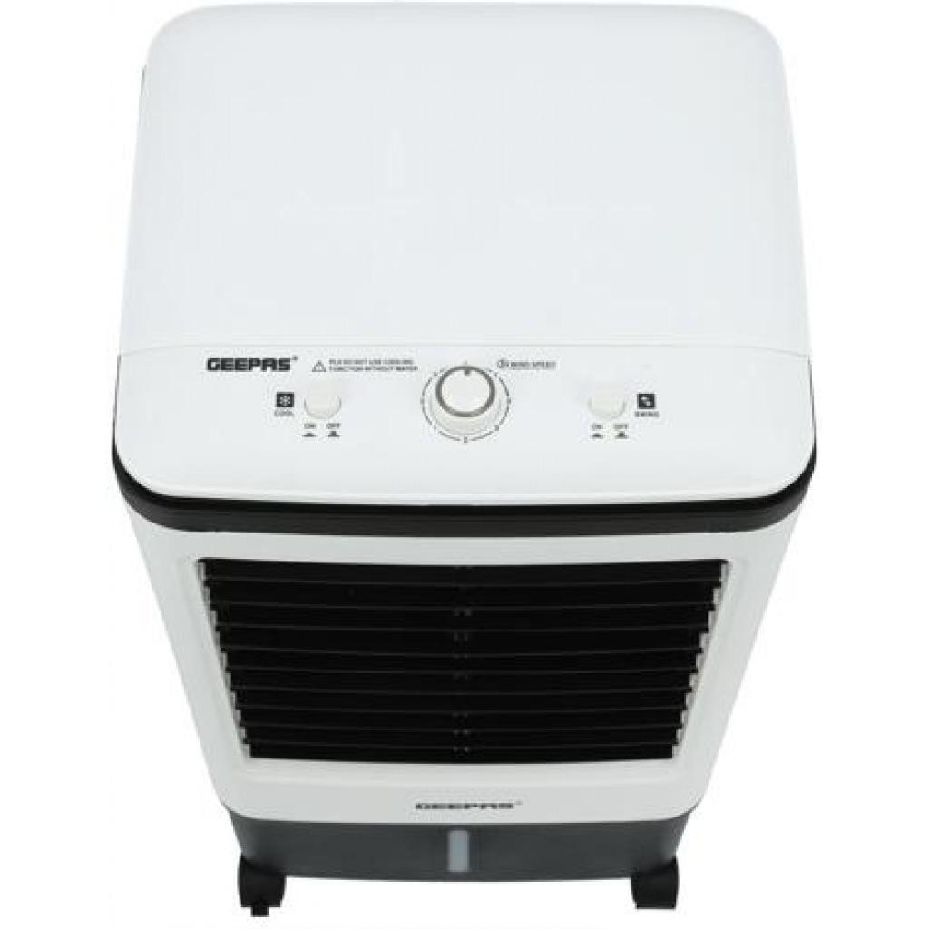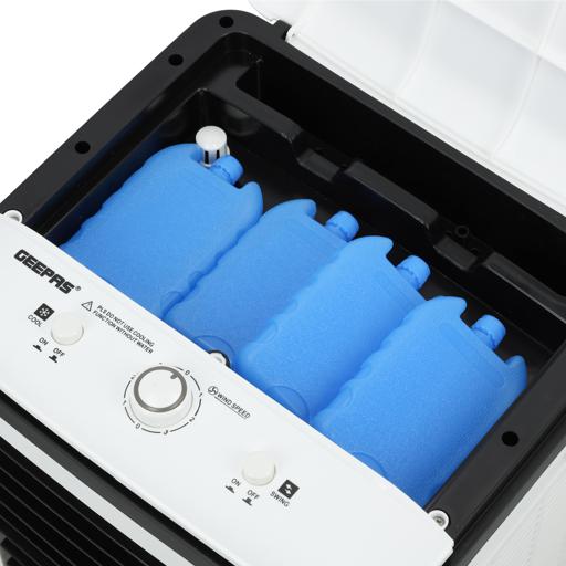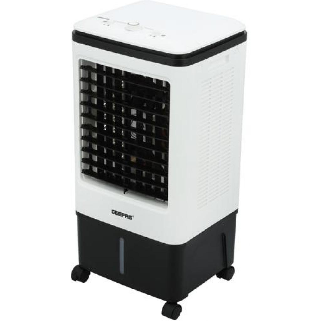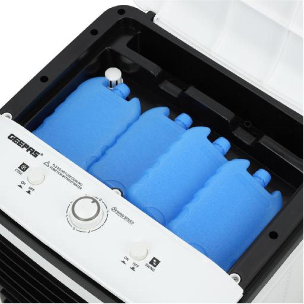 Geepas | GAC9576 Air Cooler, Ice Compartment & Remote Control, GAC9576 | Portable Ergonomic Design with 4 Speed | LED Control Panel | Wide Oscillation | Ideal for Home, Office & MoreAirflow: 2000m3/H3 wind speed; Up/ Down manual adjustableLeft/ Right automatic swingWith four dry ice box (Ice box technology)Large water tank: 20L; Product Size: 30x27x74cmAC 220-240V 50/60Hz 80WHIGH PERFORMANCE MOTOR - Built with high-quality powerful motor provides long-lasting usability. Running for long hours per fill, then it pulls warm air from the room through its water filter and fills any space with cool and good quality breathable air.ADJUSTABLE SPEED - The unit has 3-speed settings to choose from; high, medium, and low with left-right swing or up-down wings so you can find the ideal breeze to help keep you refreshingly cool on a hot summer day. As evaporative cooling is a natural process, it uses barely any electricity - this model uses just 80W, so it's cheap to run.LIGHT AND PORTABLE - Air coolers work best when positioned near an open door or window. This means you'll need to move them around to get the most out of them. That's why this model is designed to be as lightweight as possible and is fitted with castors so you can wheel it around wherever it's needed. If you have a single air cooler that you want to move around several rooms in your home or office, this is a useful feature!ICE PACKS - Evaporates cool water through the water filter without needing to ventilate out of the window. The ice packs improve cooling performance to expel ice-cold air and moisture into your room. Trap pollutants whilst breezing out clean air with cool water vapors to make the air less dry thus improving your skin and sleep. It also comes with a water filter system.STYLISH DESIGN - This sleek and stylish air cooler looks great in any décor. It'll look great at home in your bedroom, living room, or even the office. Its compact size enables it to fit snuggly into tight spaces - perfect for any room in the house where space is less.