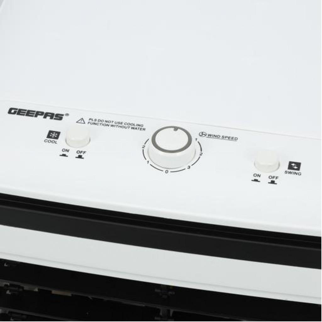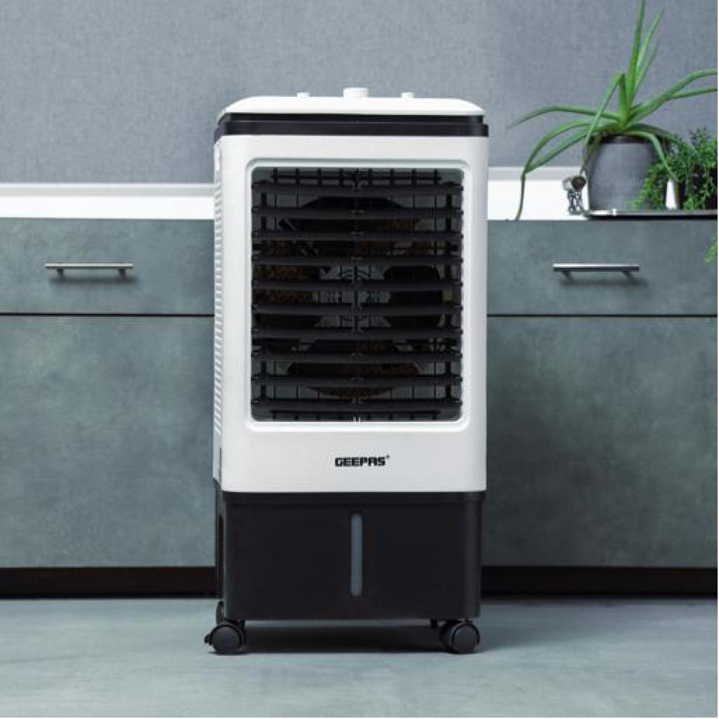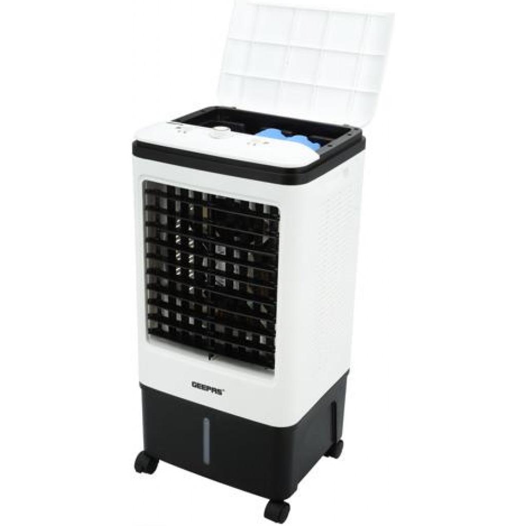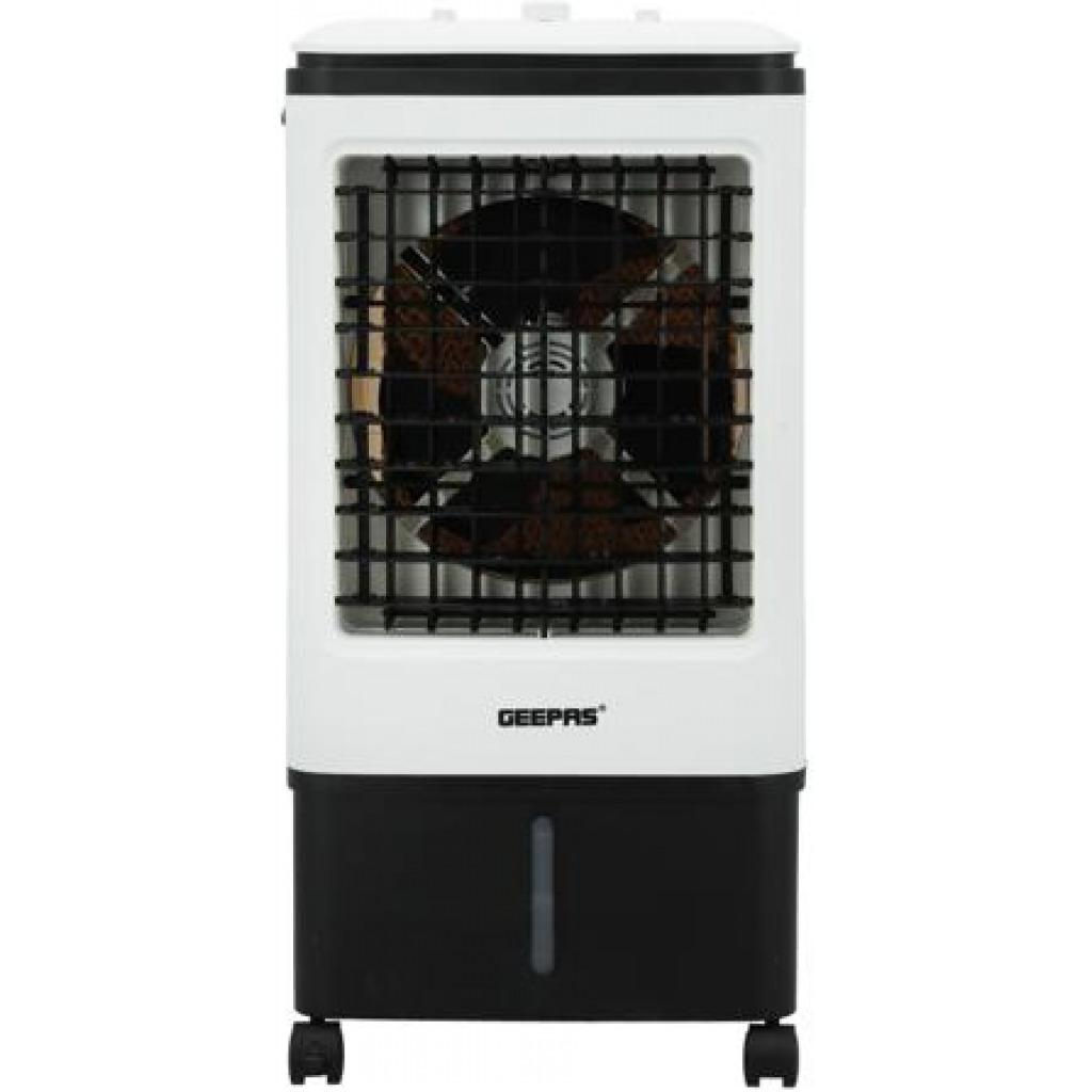 Geepas | GAC9576 Air Cooler, Ice Compartment & Remote Control, GAC9576 | Portable Ergonomic Design with 4 Speed | LED Control Panel | Wide Oscillation | Ideal for Home, Office & MoreAirflow: 2000m3/H3 wind speed; Up/ Down manual adjustableLeft/ Right automatic swingWith four dry ice box (Ice box technology)Large water tank: 20L; Product Size: 30x27x74cmAC 220-240V 50/60Hz 80WHIGH PERFORMANCE MOTOR - Built with high-quality powerful motor provides long-lasting usability. Running for long hours per fill, then it pulls warm air from the room through its water filter and fills any space with cool and good quality breathable air.ADJUSTABLE SPEED - The unit has 3-speed settings to choose from; high, medium, and low with left-right swing or up-down wings so you can find the ideal breeze to help keep you refreshingly cool on a hot summer day. As evaporative cooling is a natural process, it uses barely any electricity - this model uses just 80W, so it's cheap to run.LIGHT AND PORTABLE - Air coolers work best when positioned near an open door or window. This means you'll need to move them around to get the most out of them. That's why this model is designed to be as lightweight as possible and is fitted with castors so you can wheel it around wherever it's needed. If you have a single air cooler that you want to move around several rooms in your home or office, this is a useful feature!ICE PACKS - Evaporates cool water through the water filter without needing to ventilate out of the window. The ice packs improve cooling performance to expel ice-cold air and moisture into your room. Trap pollutants whilst breezing out clean air with cool water vapors to make the air less dry thus improving your skin and sleep. It also comes with a water filter system.STYLISH DESIGN - This sleek and stylish air cooler looks great in any décor. It'll look great at home in your bedroom, living room, or even the office. Its compact size enables it to fit snuggly into tight spaces - perfect for any room in the house where space is less.