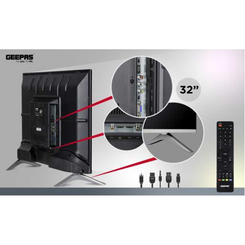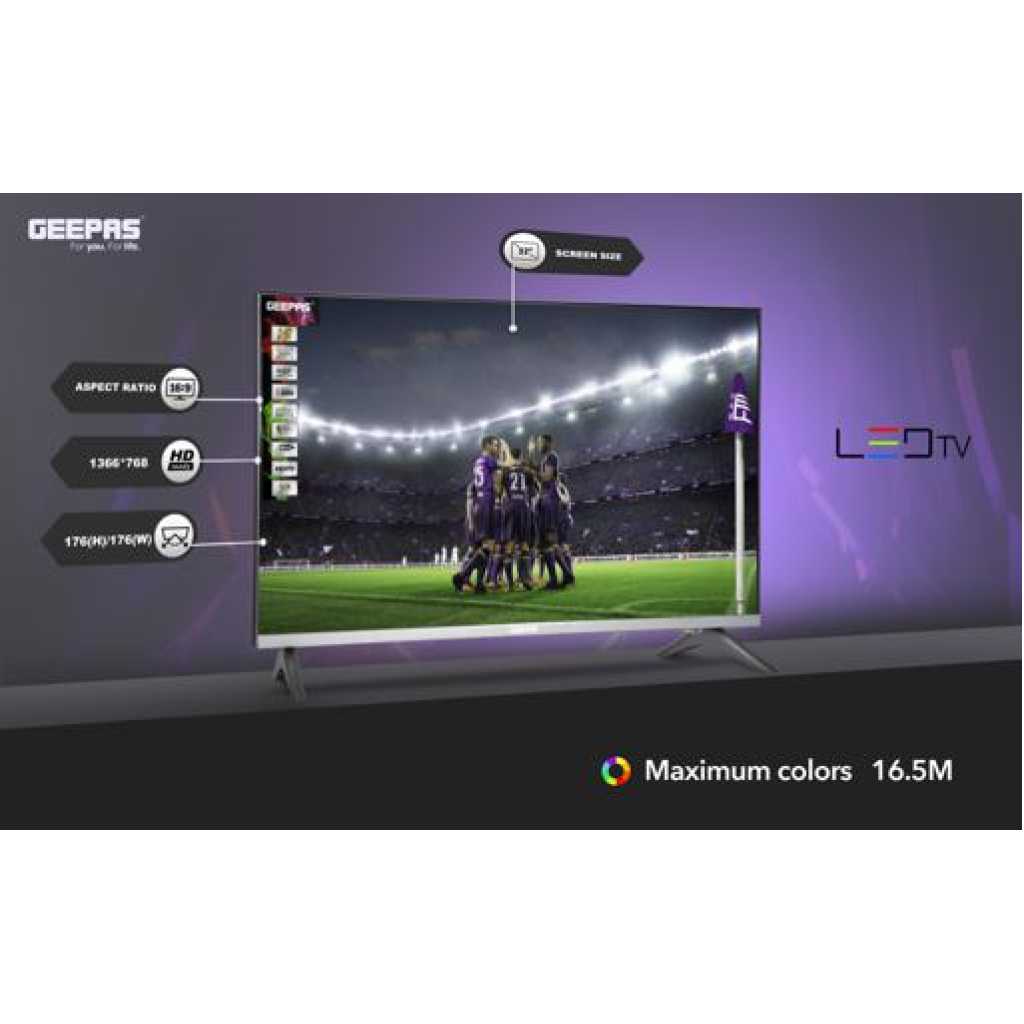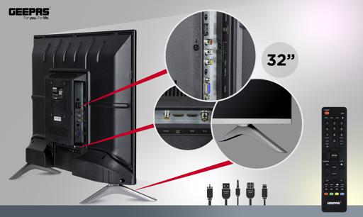 Geepas 32″ LED Digital TV | With Inbuilt Free To-Air Decoder. 1. FULL HD with EXTRAORDINARY COLOR & SUPERB CONTRAST – Explore every detail in brilliant clarity, along with lifelike colors 16.7M and enhanced brightness up to 200CD/M2. Advanced Full HD technology with a remarkable viewing experience bringing the picture quality to life. It optimizes every scene for a splendid expression. Key Features: Geepas 32″ LED Digital TV | With Inbuilt Free To-Air Decoder. Display Type: 32″