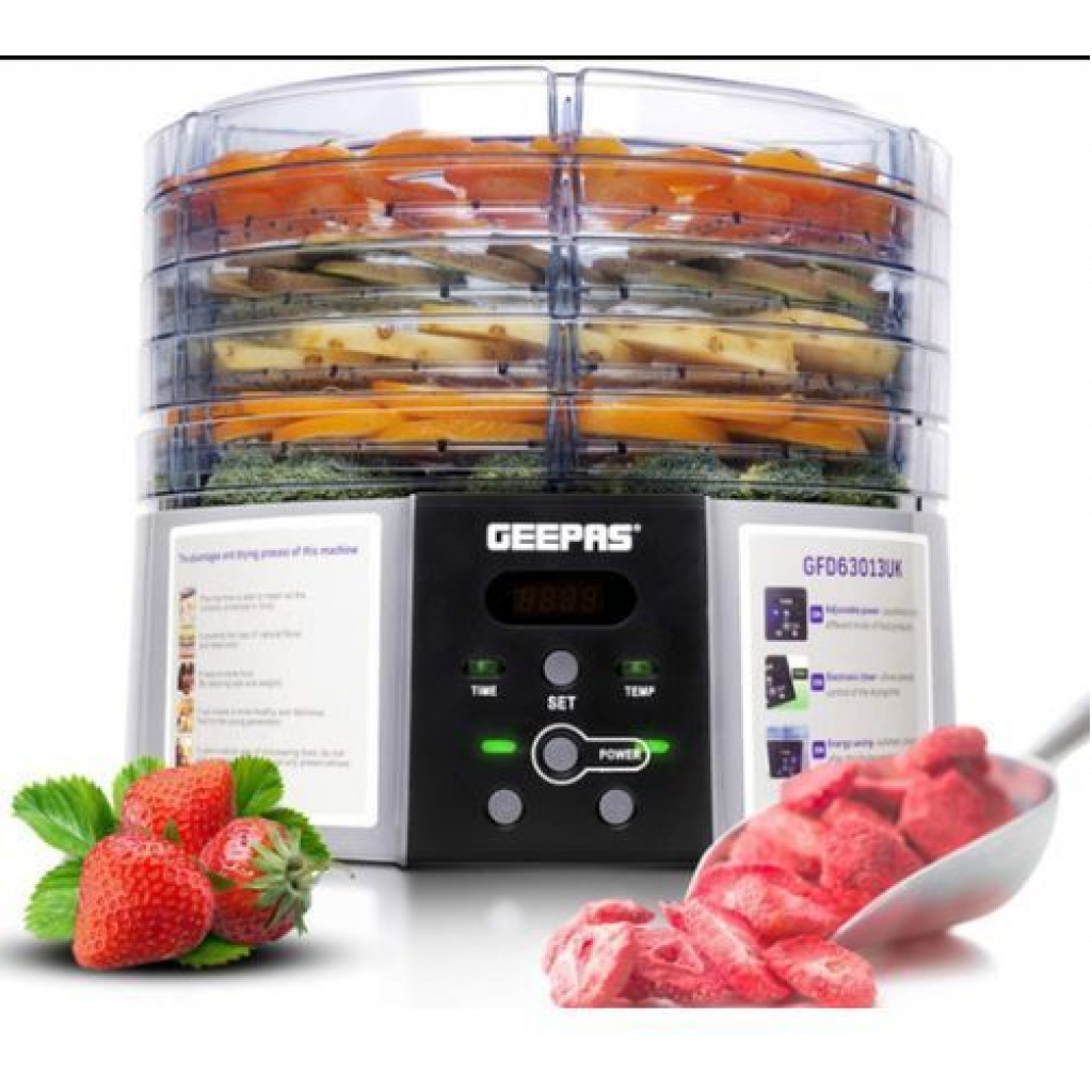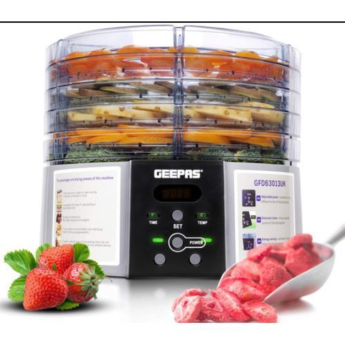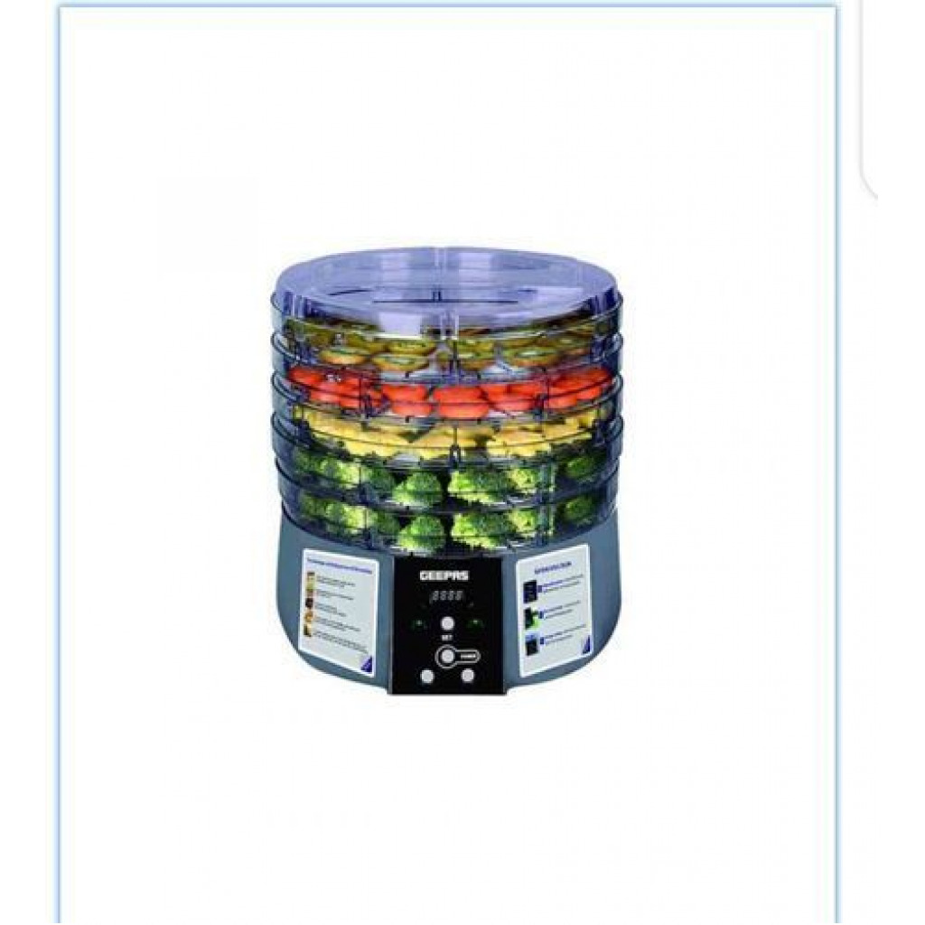 GEEPAS FOOD DEHYDRATOR. This digital food dehydrator features five layers from top to bottom. These spacious trays give more space and let you preserve 5 different types of items at a time. Now you can keep all your snacks fresh and ready for use. Stackable tray of fruit dryer allows you stack layers at different heights, you can stack trays based on the number of foods. Food dehydrator is very easy and fast to make delicious healthy and natural snacks like banana chips, fruit roll ups, dried fruit, dried chili and beef jerky. If there are children or pets in your home, this digital food dehydrator is your best choice. This method is safer and healthier as compared to store-bought snacks packed with sugar.