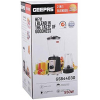 Key Features: 1. POWERFUL COPPER MOTOR, OVERHEAT PROTECTION – The 550W power of this 2-in-1 blender allows you to cope with hard fruits & vegetables, ideal for creating quick, easy, nutritious drinks and smoothies on the go – simply load, blend and go! 2. 1.5 L PLASTIC JAR, 200ML Grinder Mill – With a jar this big you can blend huge amounts of fruits, vegetables, & even ice. The grinder mill is ideal for coffee spice & nuts grinding. It helps to save time on cutting fruits or vegetables & instantly get a glass of tasty & healthy juice within a few seconds. 3. 2 SPEED CONTROL WITH PULSE – Keep control over your blending and juicing creations with 2-speed control functions whip, puree, crumb & chop. And with “Pulse” function grind the ice to the smallest grains & gives the option to use full blade speed in bursts to blend hard chunky ingredients quicker. 4. DOUBLE STAINLESS STEEL CUTTING BLADES – With these long span blades made of stainless steel, you can cut all kinds of fruits and vegetables. 5. 2 IN 1 JUG BLENDER – The 550W power of this 2 in 1 multi-functional blender allows you to cope with hard fruits & vegetables, ideal for creating quick, easy, nutritious drinks and smoothies on the go – simply load, blend and go!