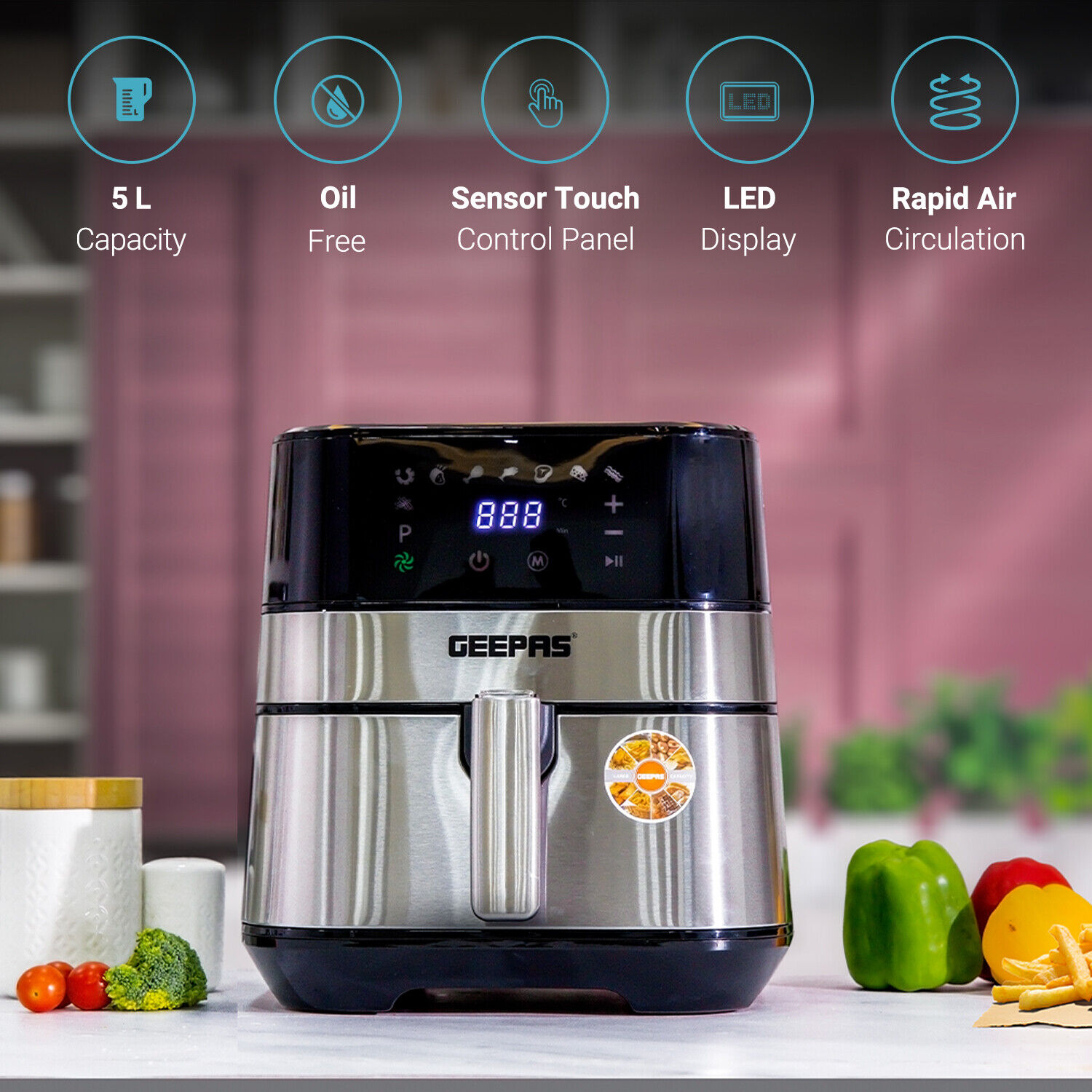 Geepas 5L Digital Air Fryer - Electric Air Cooker With Digital Touch Screen & 60 Minute Timer, Led Display, Auto Shut Off