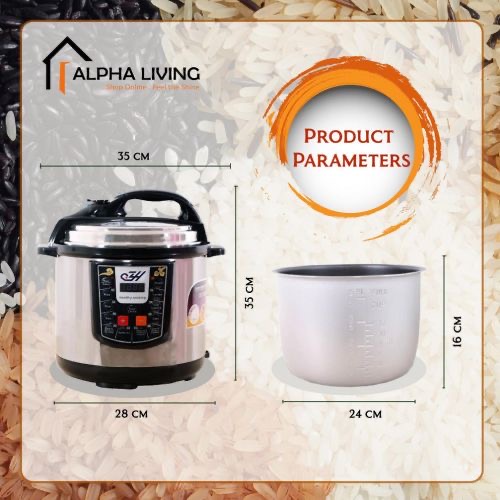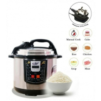 it’s convenient cooker’s generous capacity perfectly cooks any variety of rice with specialized functions for both White and Brown Rice. Once the rice has finished, it will automatically switch to Keep-Warm so there’s no need for monitoring or stirring. Unique Sensor Logic Technology uses an on-board micro-computer that ‘thinks’ for itself to automatically optimize cooking temperature to enhance flavor and texture. It Simultaneously Steams Food: Nutritious And Healthy. The Steam Tray allows for healthy steaming of meats and vegetables, even as rice cooks below! Need rice in a pinch? Save time with the Quick Rice function which cuts cooking time by up to 50%. The programmable is great for families on the go, delivering delicious rice ready when it’s needed. And when the cooking is done, the inner cooking pot and all accessories remove for easy cleanup in the dishwasher. Recipe Booklet, Steam Tray, Rice Measuring Cup, Serving Spatula and Soup Ladle included. Key Features: Multi Function Automatic Cook One touch preset buttons/Automatic. Safe Lock Lid with Steam release/ Non stick Inner Pot. Replaces six common devices: Slow cooker, Canner, Soup Maker, Steamer, Cookware and Rice Cooker. Alumnium inner pot.