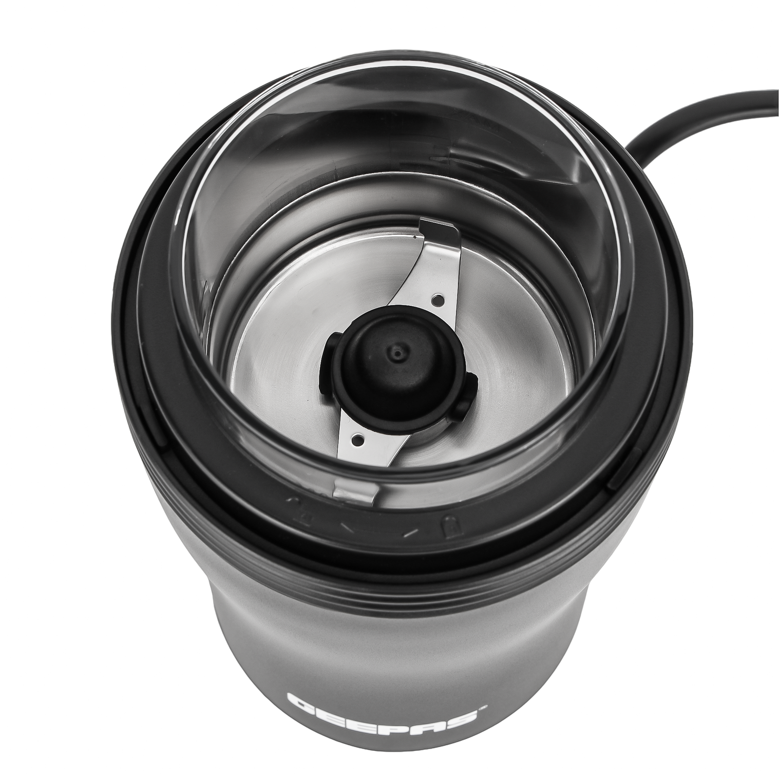 Geepas Coffee Grinder GCG41022 | 150W, 40g Capacity Introducing the Geepas Coffee Grinder GCG41022, a compact and powerful grinder designed for coffee lovers. With its stainless steel blade and 150W motor, it delivers fast and efficient grinding of coffee beans, spices, and dry ingredients. The 40g removable grinder jar makes it easy to clean and refill, while the smooth press switch ensures hassle-free operation. Perfect for home use, this grinder combines performance, durability, and convenience, backed by a 2-year warranty. Key Features ✅Sharp stainless steel blades for efficient grinding. ✅150W powerful motor with overheat protection. ✅40g removable jar for easy cleaning and refilling. ✅Simple press switch operation for smooth on/off control. ✅Suitable for grinding coffee beans, spices, and dry ingredients. ✅Compact, lightweight, and easy to store.