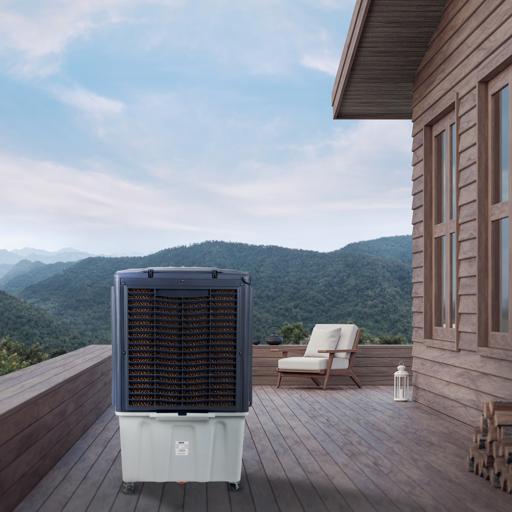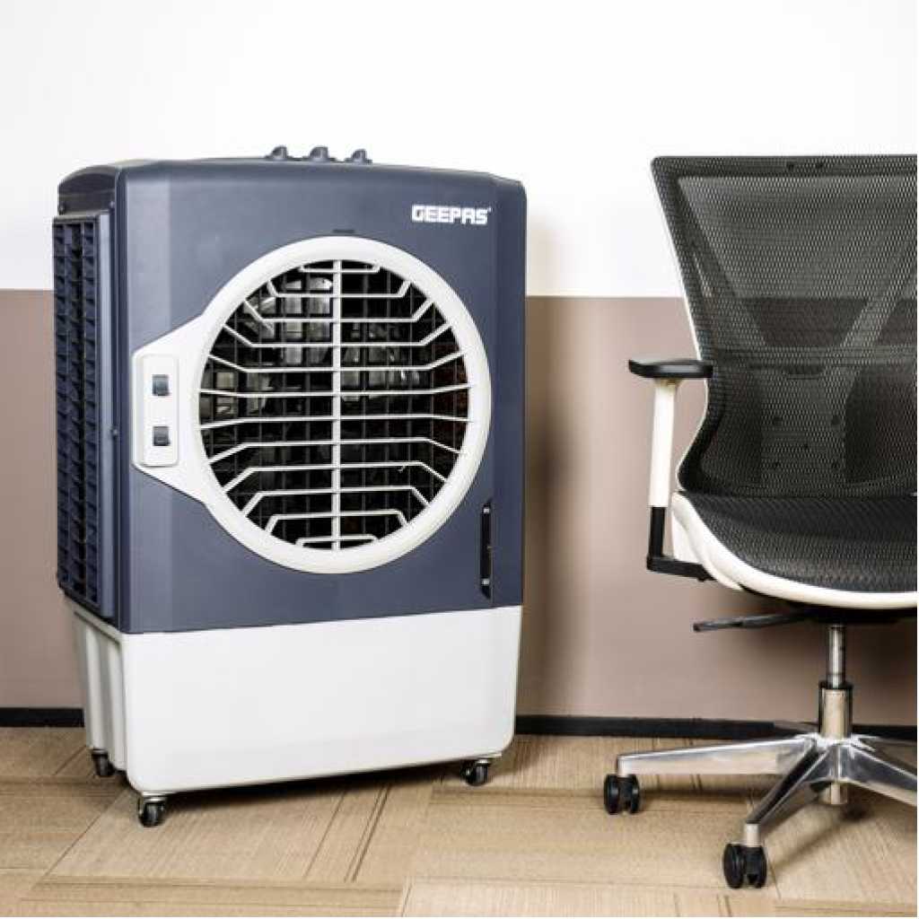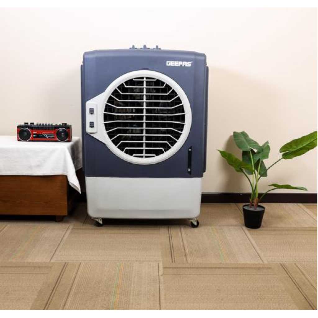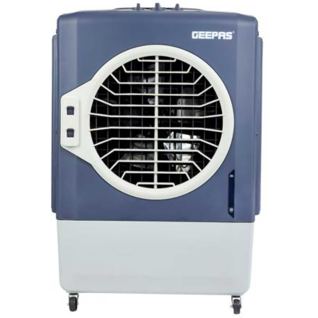 Geepas Commercial Air Cooler, 53L, GAC9603. An air cooler with 3 speed levels that delivers natural moist air and humidifies dry air.The cooler features a rust-free plastic body.Low energy consumption saves electricity bills.Honeycomb technology ensures high-efficiency cooling pads.The cooler features an oscillating swing function and increased air throw for faster cooling..Cooling area: 95 square meters.Product weight: 16kgProduct Color: Blue.Includes a 2-year manufacturers warranty.
