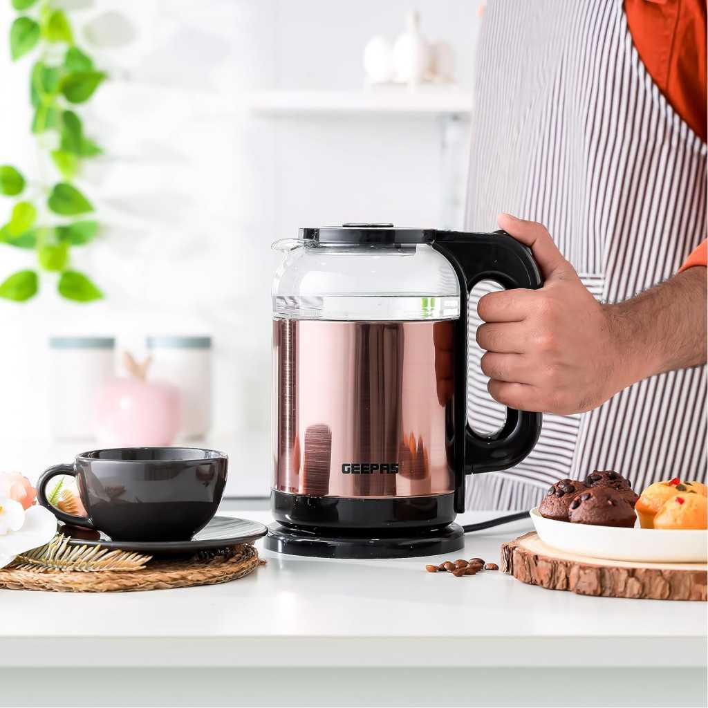 Whether you’re brewing a full pot of tea or coffee, the Geepas kettle is a great addition for your home Large capacity (1.7L) which suits for a whole family, the water comes to a full boil within 5-6 minutes and will be ready to use for tea, coffee, pasta, hot chocolate, oatmeal, instant soup and so on This product is the best to consider as the features that are offered are of most value for ordinary daily use A concealed stainless steel heating element helps boil water in a hygienic way Single touch lid locking mechanism makes operation easy on your fingers It is designed with a capacity of 1.8 liters and comes with a removable filter A concealed stainless steel heating element helps boil water in a hygienic way
