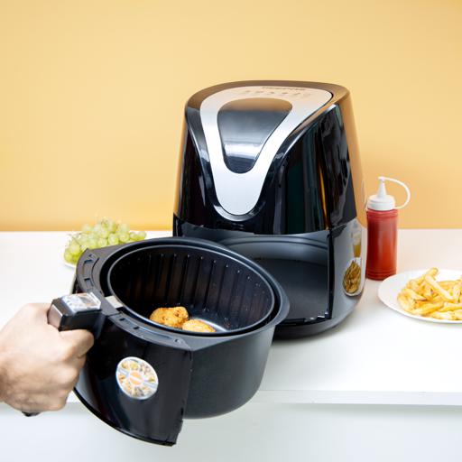 LARGE CAPACITY - Our large air fryer with 3.5 liters of cooking capacity so you can easily cook enough healthy low-fat food to feed a small family using little to no oil.TOUCHSCREEN LCD DISPLAY, DOUBLE PROTECTION – It has a touchscreen LCD display that lets you set the timer and temperature and also tells the progress of the food being fried. It has double protection layers for ensuring safety. Cook various food items in it including but not limited to fries, chicken, sausages, gammon, and moreNON-STICK BASKET WITH LFGB & FDA – This air fryer has a large capacity basket. The basket is made entirely from non-stick material and is gentle on the food. It is LFGB, and FDA passed and safe for your health.OVERHEATING PROTECTION WITH AUTOMATIC SAFETY SHUT DOWN - With automatic overheating protection and a safety shut-down, you'll never again have to worry about hazards in the kitchen, as you can simply set the timer and forget about it until the cooking is complete.7 PROGRAMS - Just tap the display to select a preset cooking mode and then the air fryer nearly instantly cooks any meal at the perfect preset time and temperature. Quickly and easily, make your favorite comfort food such as French fries, cake, pizza, mixed vegetables, chicken, steak, shrimp, and fish.2 YEARS WARRANTY & ADVANCED SAFETY FEATURES - This Geepas digital air cooker with inbuilt over-heat protection and auto-off sensors, so you can cook completely worry-free