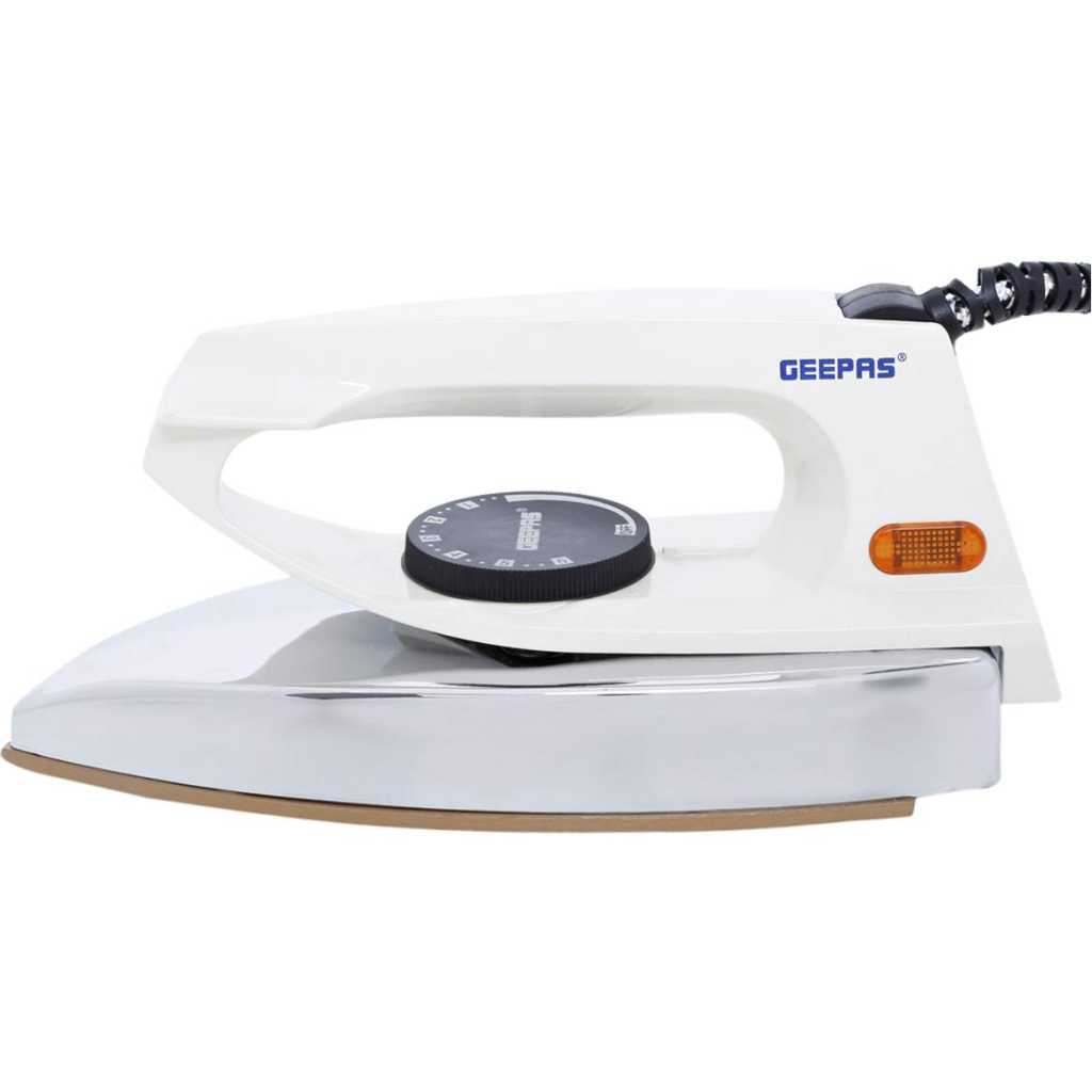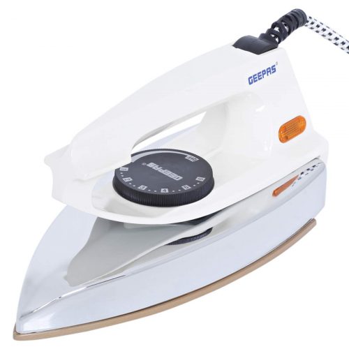 Geepas 350W Rice Cooker with Non-Stick Cooking Pot features three different functions namely cook, steam and keep warm. It allows you to choose how you prepare your rice. After cooking, you can also keep your food warm using ‘Keep Warm’ function. The steam function lets you cook rice healthily while preserving the nutrients. Perfect for cooking all types of rice – including arborio, jasmine, white, basmati, long grain and more. Ideal for family dining, batch cooking and meal prepping. This rice cooker has a sturdy lid made from tempered glass. It has a stainless steel rim that fixes it into place. It is quick and efficient. Specification: AC voltage: 220-240V, Frequency: 50/60Hz; Power: 350 watts; Capacity: 0.9 liter. Key Features: HIGH-CLASS IRON WITH 60 MICRON TEFLON SOLEPLATE – This Iron box is built with high quality, durable material, and non-stick coating. Its lightweight heats quickly and fast & smooth ironing tough jeans and hard linen fabric instantly. COMES WITH FABRIC GUIDE & PILOT LAMP INDICATOR – The Geepas Iron Box providing the fabric guide for your various cloth collection and select the required cloth type to avoid overheating & damage to your cloth. OVERHEATING SAFE AND AUTOMATIC POWER CUT OFF – This Iron Box is safe as it is anti-overheating while you are busy in some other work so it will cut off the power once it reaches the required temperature. EASY HEAL REST & CORD WRAP FACILITY – Heavy weight dry Iron box is designed for the stable rest while using and once work is done you can wrap the cord to handle to prevent clutter. ANTI-SHOCK HANDLE & THERMOSTAT PILOT LAMP – The Iron Box is designed with a shock-resistant high durable handle which is very much comfortable while you are using and is heated resistant. This iron box has the thermostat function which will maintain the desired temperature if it cooldowns.