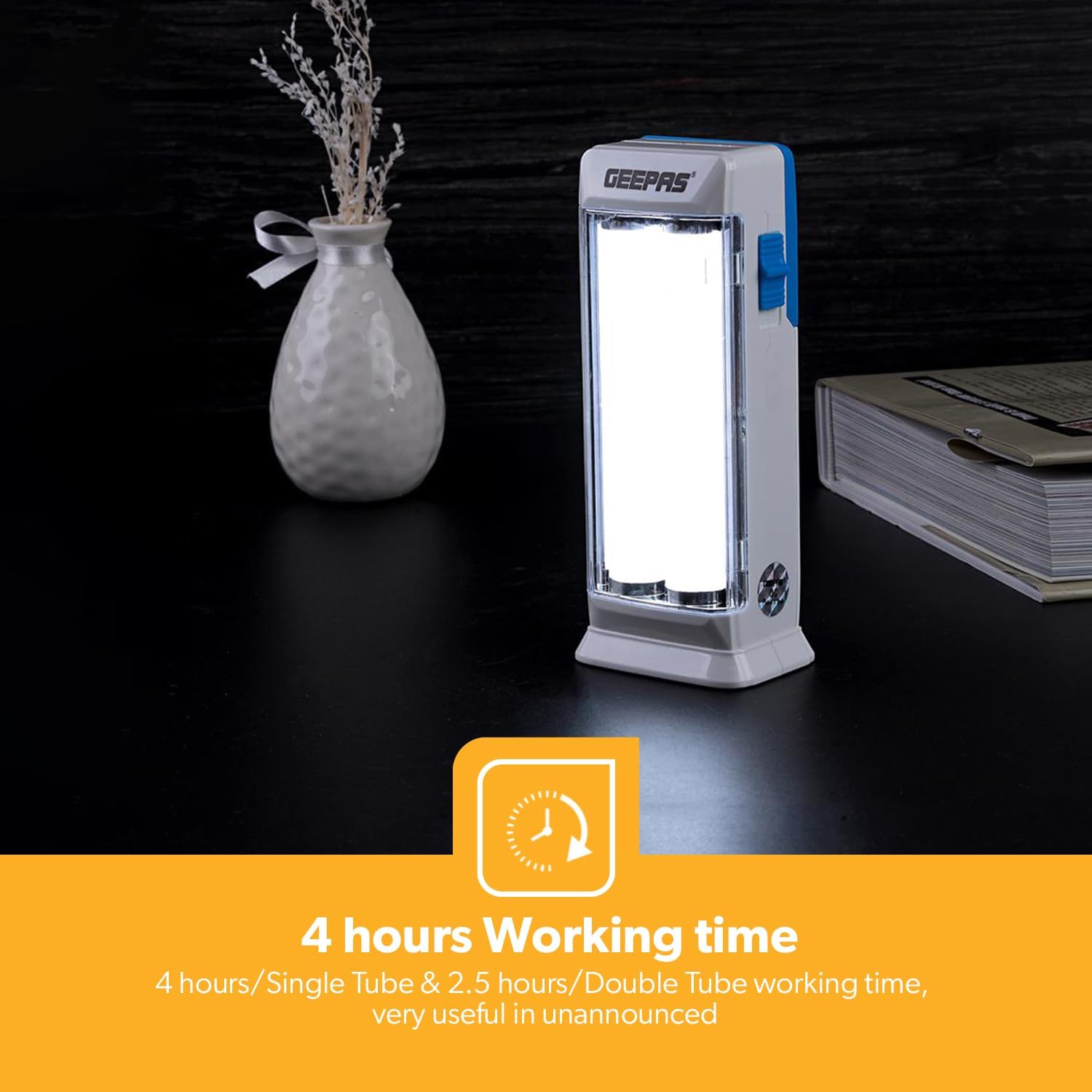 Key Features: RECHARGEABLE BATTERY – This lantern uses a lead-acid battery with a capacity of 4V 1200mAh. It can provide continuous bright light for up to 4 hours (One tube) making it ideal for camping and outdoors. 18PCS 0.2W HI-POWER LEDS, PORTABLE HANDLE – It is a more efficient way of providing brighter light in a smaller size. Provided with a strong handle for easy carry. 4 HOURS WORKING (Single Tube), 2.5 HOURS (Double Tubes) – The lantern requires 8 to 10 hours to charge completely. 4 hours/Single Tube & 2.5 hours/Double Tube working time, very useful in unannounced or sudden power outages. ANTI-GLARE BRIGHT LIGHT – This emergency light provides uniform light throughout and has anti-glare SMD LED’s. It is friendly to the eyes and can also be used as a study light for reading. 2 YEAR OF MANUFACTURER WARRANTY.