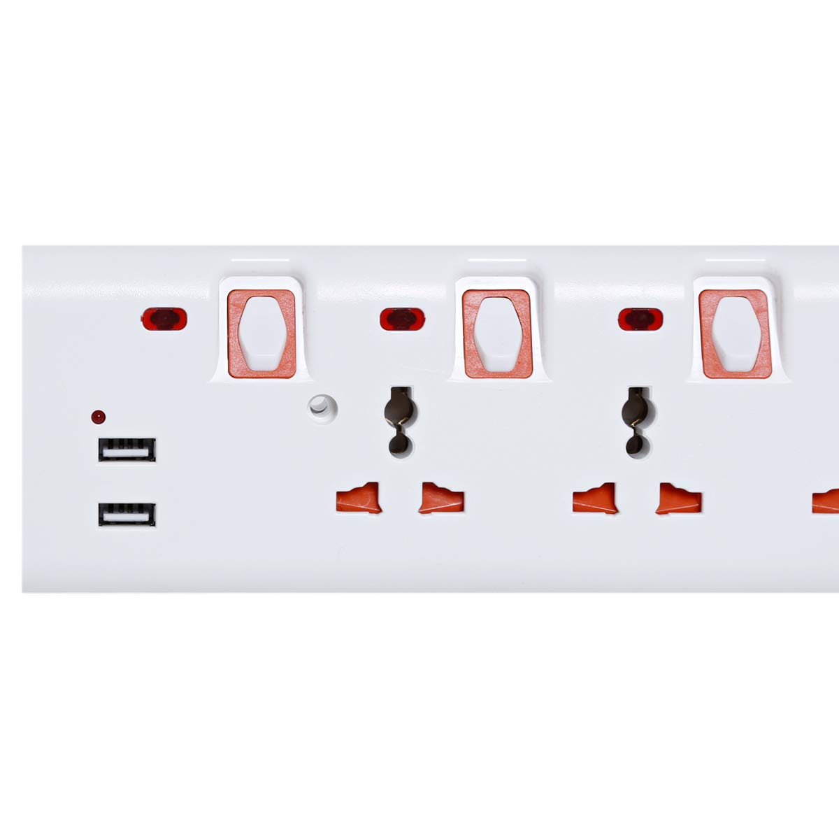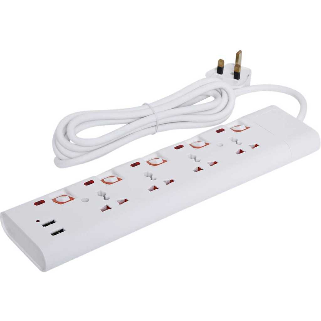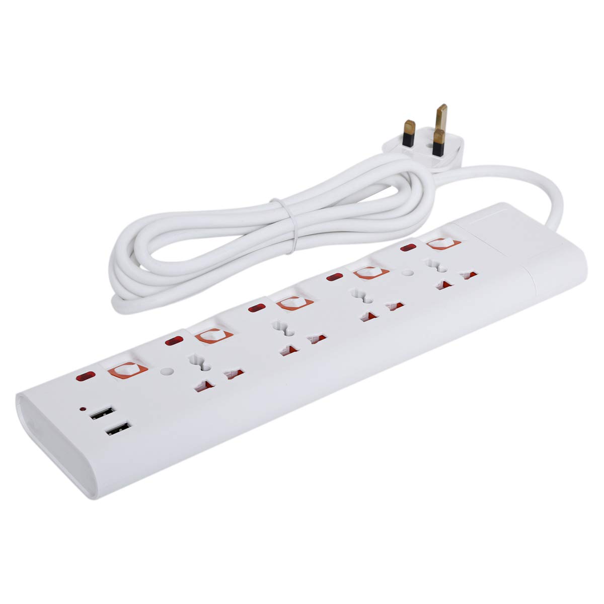 Product Features: and: Geepas Model Number: GES4095 Pack Quantity: 1 Type: Plug Sockets Color: White Current Rating: 13 Amp Voltage Rating: 250 V Power Rating: 3250 W Converter Plug Type: 3-Pin Cable length: 3 meters Outlet Location: Floor Wall Number of Outlets: 4 Number of Switches: 5 Indoor/Outdoor: Indoor and Outdoor Certification: ESMA Certified Individual Switch: Yes LED Indicator: Yes Key Features: Rated voltage : 250V 50/60 Hz Switch spec :13A 250Vac Cable spec :3 Cores X1 .25MM2 Cord length : 3 meter Rated current :13A