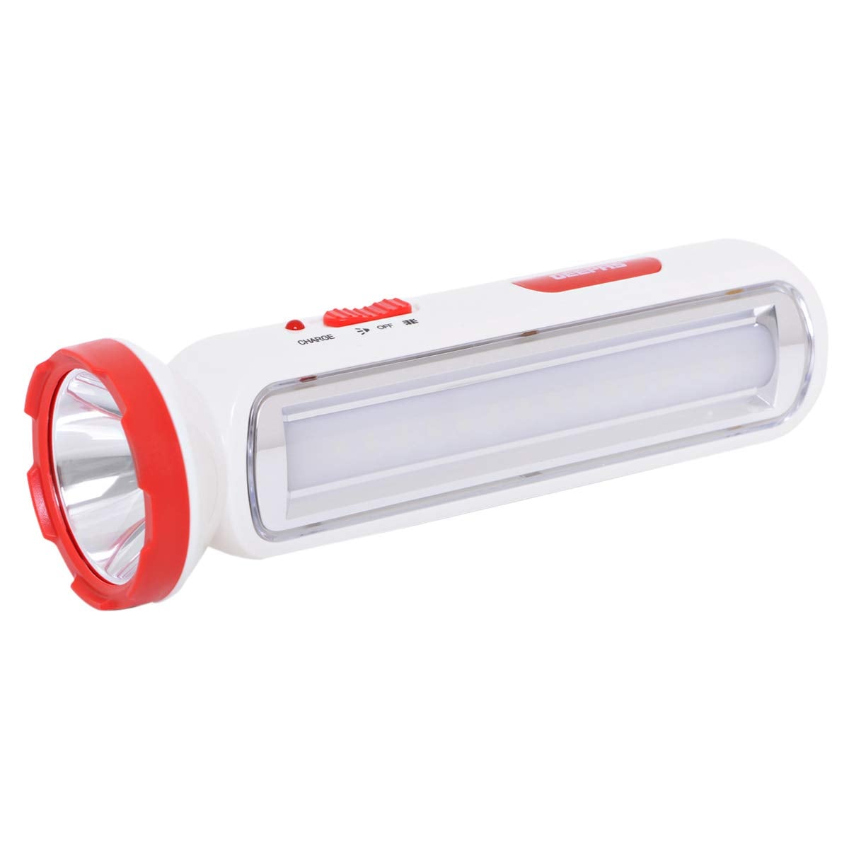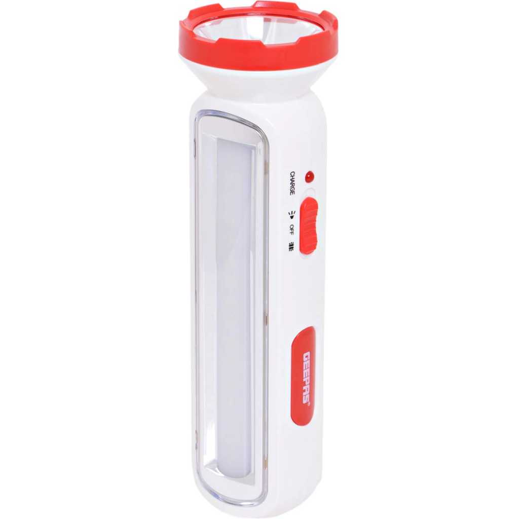 Geepas presents you with a 3W Rechargeable LED Torch with 8W Emergency Lantern. It is easy to carry as it has a compact size and can fit your travel bag with ease. With its brighter light and long-time performance, it is ideal for camping as well as sudden power outages. This lamp uses 16 mini LED lights. All these small LED lights work together and glow in a uniform manner to provide glare-free light. This way is more useful as it offers brighter light and consumes less energy. This rechargeable LED lantern has a 4V 1600mAh battery that can provide continuous light for 2 hours. It can easily take care of all the light for one day. It will be your friend in darkness and can easily take care of all the light for a long time. After being discharged, the battery requires 12 to 15 hours to recharge completely. After charging, it is ready to be used again. For improved and more extended battery performance it is suggested that you charge the device regularly and avoid complete discharging as much as possible because that can decrease the battery lifespan and affect performance. It can also be very useful in unannounced or sudden power outages. If you are on a camping trip, let the Geepas Rechargeable Lantern be at your side and brighten your trip when the daylight has disappeared. Use it in your tent, on your table, or when going out at night. Ideal for INDOOR OR OUTDOOR USE, as perfect for camping and fishing as it is for keeping at home for use during power cuts or relaxing in the garden at night. Key Features: Brand: Geepas Model Number: GFL4663 Type: Flashlight Color: White Body Material: Aluminium with Anodized Finish Product Length: 21 cm Battery Included: Yes Number of Pieces: 1 Certification: ESMA Certified Built-in Recharging Unit: Yes