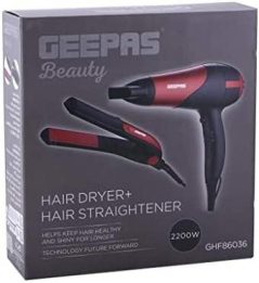 1. POWERFUL HAIRDRYER & HAIR STRAIGHTENER – Get professional blow-dry results fast with this 2200W hair dryer. And remove the curls with the 35W straightener with ceramic coating plates. 2. 2 SPEED AND 2 TEMPERATURE SETTINGS HAIR DRYER – With variable heat & speed settings, you can tailor blow-dry to your hair type. Finish with the Cool Shot button for ultra-glossy tresses and a style that stays in place all day and night. 3. HAIR DRYER COMES WITH COOL SHOT FUNCTION – It gives a cool blow to the hair and is very useful for setting a hairstyle in place. This makes your hairstyle last longer as it does not get disturbed easily. 4. GEEPAS 35W HAIR STRAIGHTENER – The 35W straightener heats quickly and it has antistatic ceramic coated plates giving your hair more protection and delivering sleek and smooth hair with every effortless stroke. 5. BOTH COMES COMFORTABLE HANGING LOOP – Both the hair stylers devices are easy to use, light weight and can be stored with the help of hanging loop. 1. STRAIGHTENER COMES WITH WIDER CERAMIC PLATES – With anti-static, ceramic smooth glide coated plates, the straightener delivers more protection, extra shine and less static. With wider floating plates you can straighten more hair in one stroke. 2. 2 SPEED, 2 TEMPERATURE SETTING – This hair dryer offers two different speeds. You can easily select the required speed to suit your needs. With 2 different temperature settings, you get to choose which heat level is best for your hair. 3. POWERFUL with 2200W DRYER & 35W STRAIGHTENER – This hair dryer may look small but gives a professional touch and carefully removes the water while protecting the hair from heat giving a controlled and concentrated style that remains still day and night. The Straightener has 35w powerful motor heats up quickly and save to do the hair style. 4. 360 DEGREE SWIVEL CORD, HANGING LOOP – These hair styling devices have flexible cord allows twisting and rotation so you can move the hair straightener & dryer with comfort. Easy to store with hanging loop. Key Features: Manufacturer Number : GHF86036 Brand : Geepas Power Source : Corded Electric Hair Dryer Type : Hair Dryer Are batteries needed to power the product or is this product a battery : 0 Is this a Dangerous Good or a Hazardous Material, Substance or Waste that is regulated for transportation, storage, and/or disposal? : 0 External Product ID Type : Not Available
