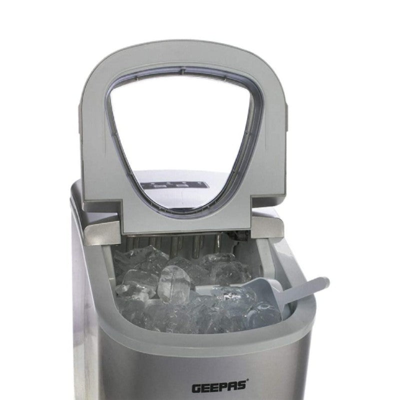 Geepas GIM63015 UK Portable Instant Ice Cube Maker Machine – Silver Produces ice in as little as 6 minutes, so you have it when you need it It is nice for employees to have not only beverages, especially water, on hand but also have ice to go in their beverages Offers the perfect solution to families in need of a supplemental source of ice Product Length 40 cm Product Height 45 cm Product Width/Depth 35 cm Capacity 2.2 L Ice Container Capacity 700 gm Production Capacity: 12kg In 24 Hours