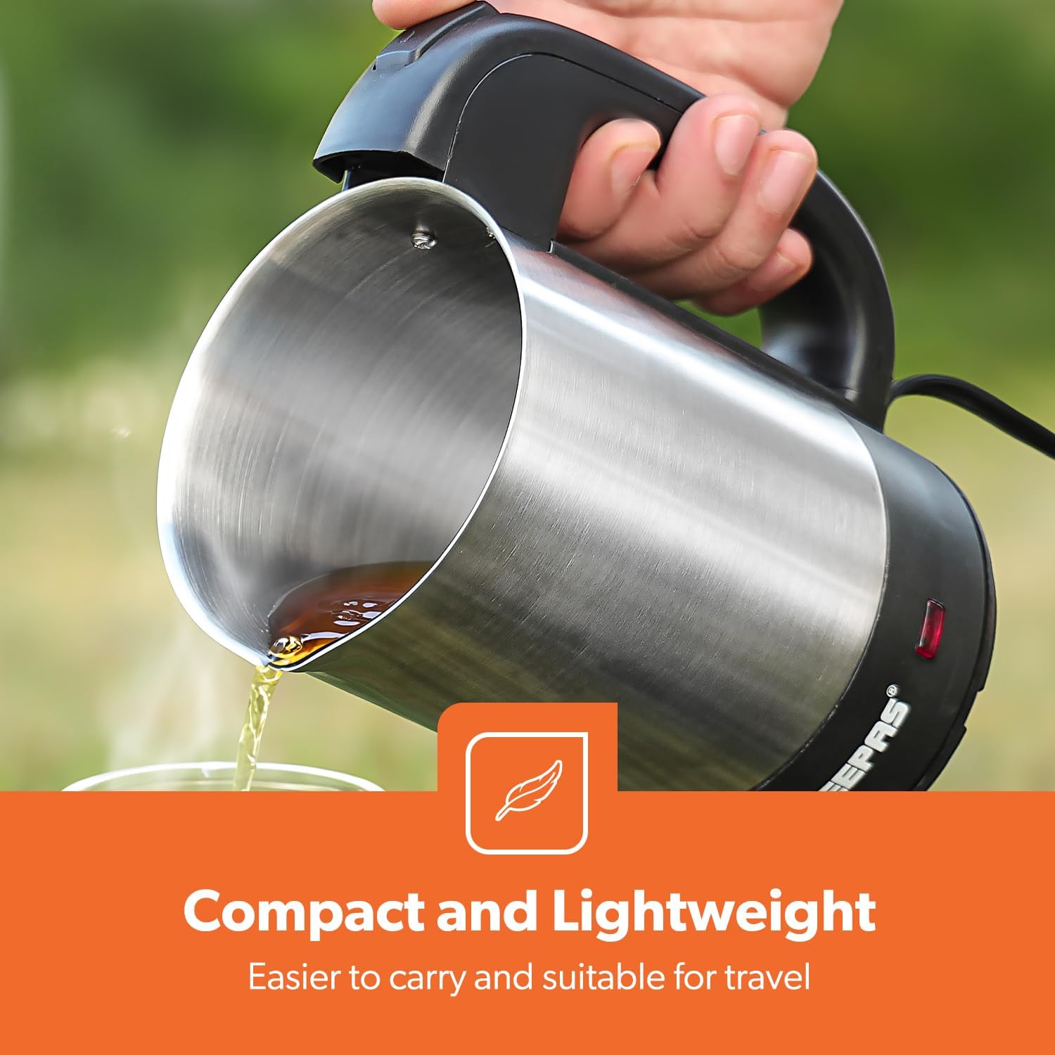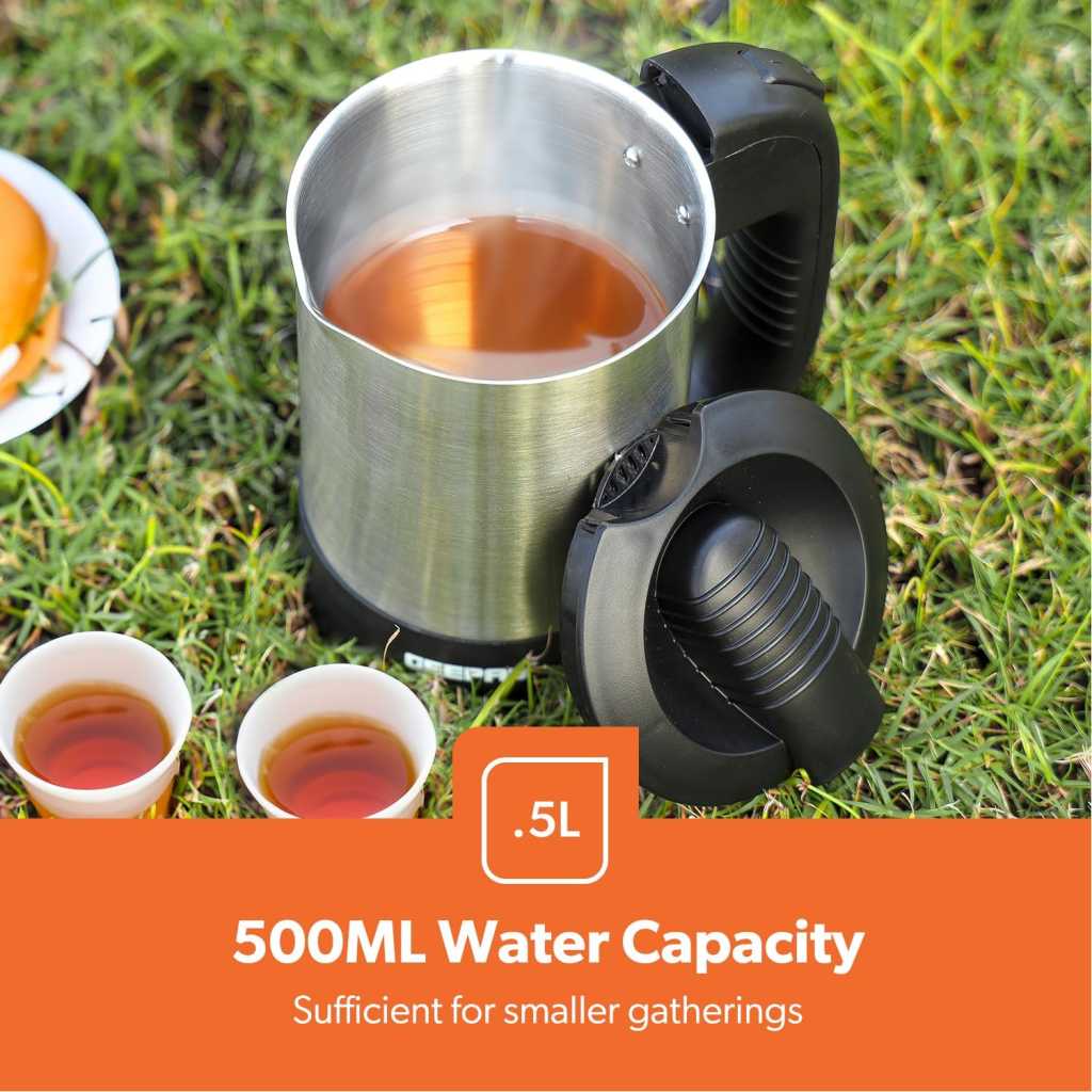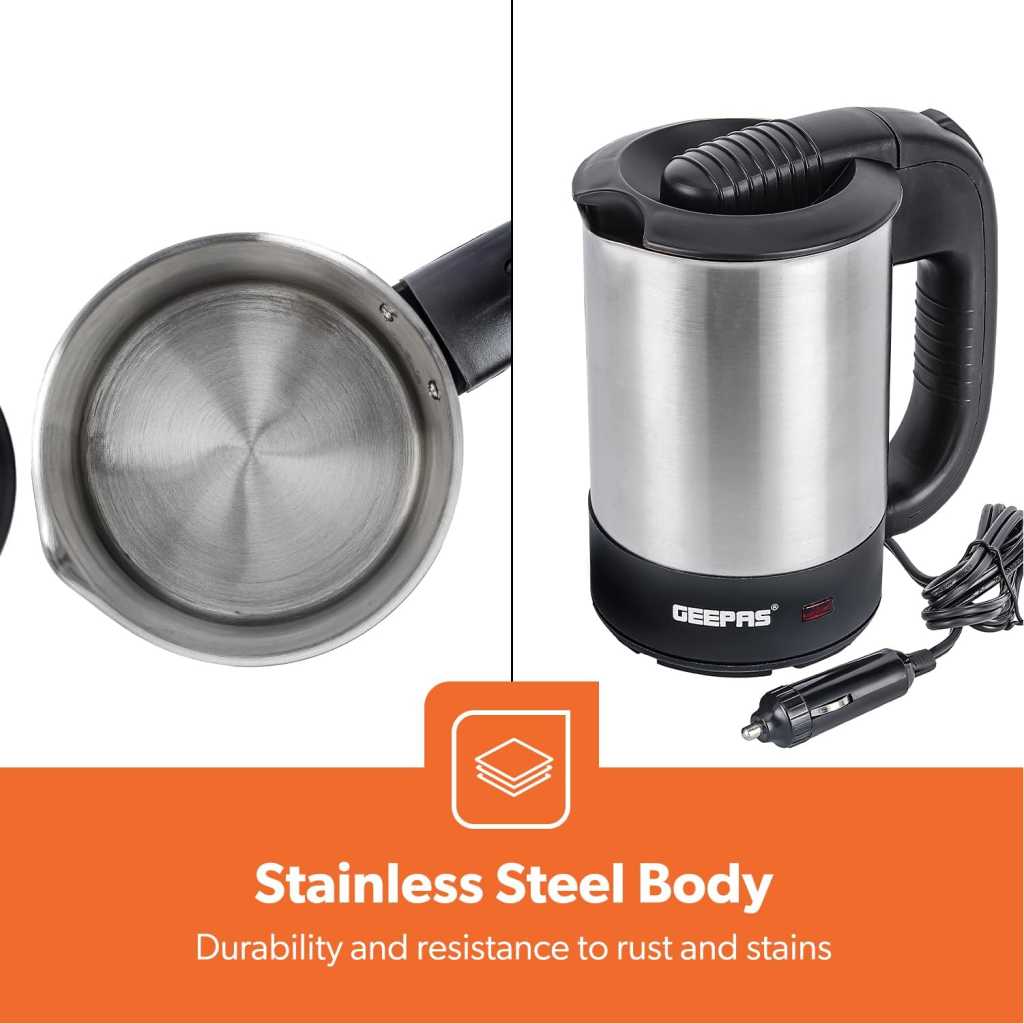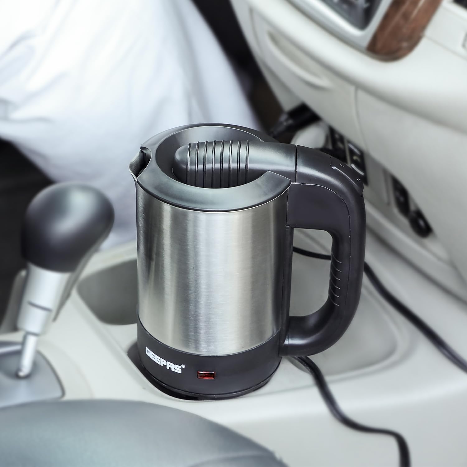Geepas GK38041 12V Stainless Steel Car Kettle- Water Heater for Caravans- 500ml- Stainless-Steel Electric Car Kettle with Cigarette Lighter Charger | Quick Hot Water, Coffee, Tea. TRAVEL READY HOT WATER CAR KETTLE: 12V electric kettle is ideal for travel, and use when camping, caravanning, and in cars, vans, trucks, and boats. Whether it is covering long distances to reach the office or a vacation destination, a hot cup of tea/coffee is an on-the-go luxury. CAPACITY 500ML, THE PERFECT BREW – The capacity is 500ML, which will be a good size for making multiple cups of tea or coffee. To make pouring comfortable and easy, the kettle features an ergonomic handle. Make your perfect brew, for tea and coffee lovers. CONCEALED HEATING ELEMENT – The concealed heating element of this car kettle provides a more efficient boiling time and protects & preserves the interior of the kettle. Quick to heat perfect serve for 1 or 2 people. CIGARETTE LIGHTER DESIGN – The travel heating kettle plugs easily into standard cigarette lighter 12V sockets, which can be used comfortably in most cars, caravans, trailers, RVs, and motor homes
