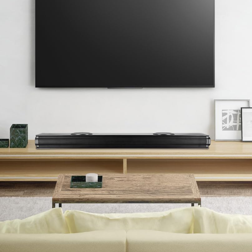 Geepas GMS11152 Portable Sound bar System 2.2CH 2 Inbuilt Sub Woofer with 3D Sound Technology USB/AUX/BT/HDMI/Remote Included Connect to TV, Mobile, Laptop & More, Black. Are You Looking For Advanced Soundbar with powerful subwoofer for TV Yet A Compact Size?With a slim and stylish design, the Geepas Soundbar can fit easily in any home, no worries about taking up a lot of room or blocking the view. Despite the mini size, the sound remains impressive. The 2.2 channel sound system produces immersive and well-balanced sounds, whether while hearing music or while watching movies or playing games.The soundbar is the stunning addition to any TV and gaming console with a modern aesthetic design that fits perfectly with your TV, whether it’s mounted on a wall or displayed on a stand.It has cable inputs and a wide range of connectivity options like (HDMI ARC, Optical, Bluetooth, USB, AUX), the soundbar is suitable for many applications. It can be easily connected to your TV to create a theatre-like sound quality experience. Enjoy surround sound while watching your favourite shows and movies minus the hassle of setting up a complicated speaker system.Enhance your entertainment experience via this Geepas soundbar for TV, laptop, mobile, tablet, pc. So get a more reliable and dynamic sound experience while playing games or listen to music.other Specification -AC 110-240V, 50/60Hz.