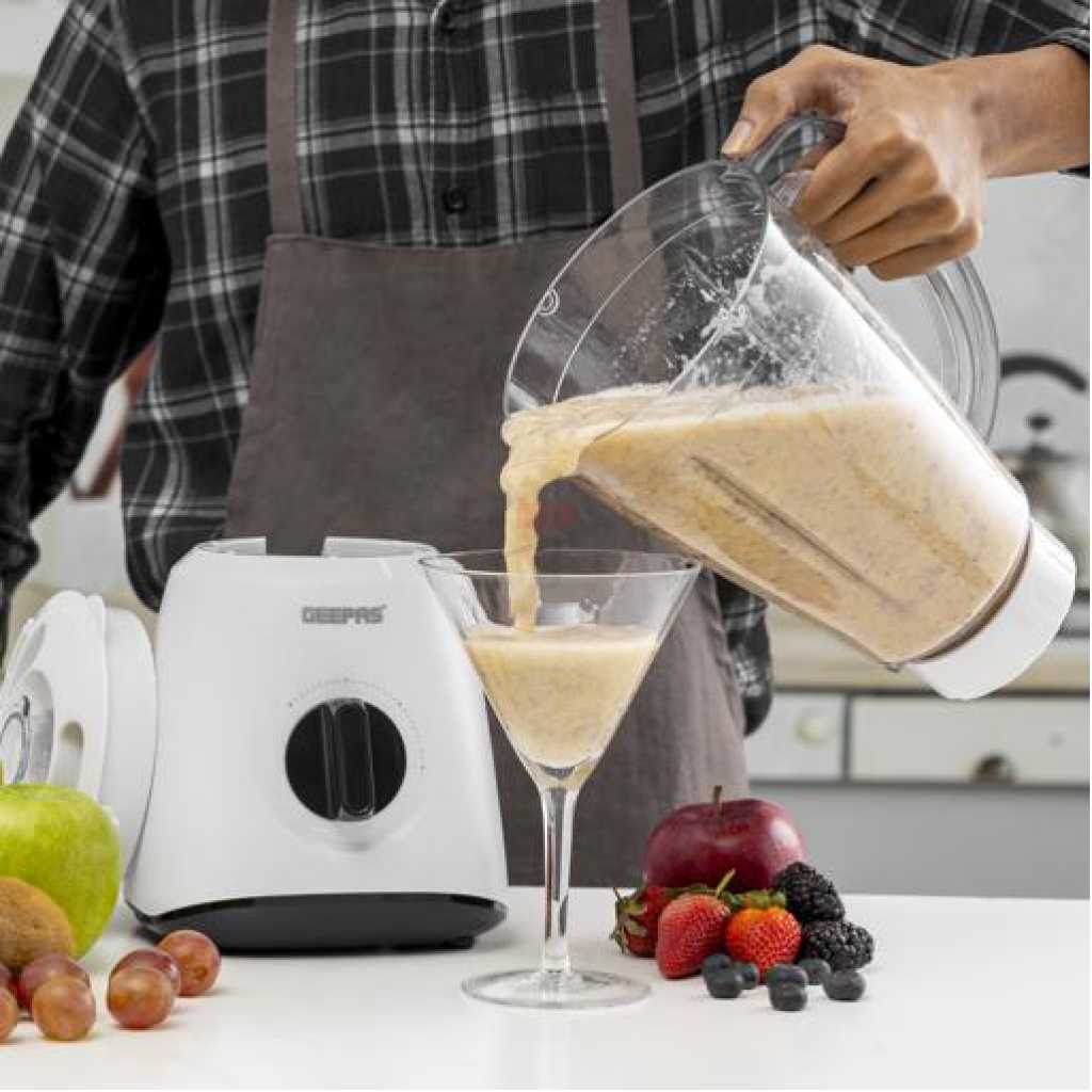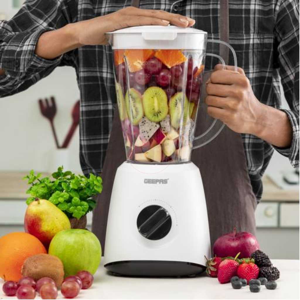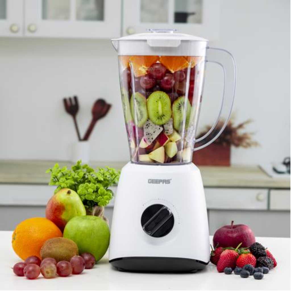 Geepas GSB9894 Multifunctional Blender – Stainless Steel Blades, 2 Speed Control with Pulse | 1.5L Jar, Interlock Protection | Ice Crusher & Smoothie Maker – 2 Year Warranty. Geepas 550W Multifunctional Blender ! Nowadays it is impossible to imagine any kitchen without a blender. It accelerates and simplifies what previously required so much effort and time. The Geepas multifunctional blenders can mix, and soya bean milkshake, smoothies, vegetables, fresh juices and these are not the last of its features from a whole list. Take a step towards healthy living; include juice in your daily routine. Powerful 550W motor and specially designed stainless steel blades, creating pulse, pause and blending patterns. Making blending fast and simple, the Geepas blender is ideal for the health-conscious to make homemade sports nutrition and protein shakes. The Body is made of high-quality plastic making it ideal choice which will last for longer and adds durability to the device. Cleaning is a breeze, just rinse under the tap or place in your dishwasher and that’s it, it’s clean. Perfect ice crushing, blending, chopping, pureeing, juicing and controlled processing! Key Features: Geepas GSB9894 Multifunctional Blender – Stainless Steel Blades, 2 Speed Control with Pulse | 1.5L Jar, Interlock Protection | Ice Crusher & Smoothie Maker – 2 Year Warranty. Speed Options: 2 Power (Watt) : 550W Stainless steel cutting blade Convenient and useful removable cap (measuring cup) for adding ingredients while the product is in use Jar Capacity (L) : 1.5L 550W powerful motor for more efficiency 2 speed + pulse for perfect control