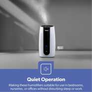 1) ULTRASONIC COOL MIST TECHNOLOGY – Features a 2.6L transparent tank with an adjustable mist output. Our ultrasonic humidifier works in all sizes of rooms and lasts for 9 straight hours. So you can breathe easily and get more restful sleep. This makes our air humidifier ideally suited for large rooms and is fantastic for any home, apartment, office, nursery, or college dorm. 2) VARIABLE MIST, DOUBLE NOZZLE – This Humidifier was created with YOU in mind. Your environment, your needs, and your preferences! Designed with a super simple control dial that emits continuously variable mist with its double rotating nozzle so that you can fully control your room moisture for cool and healthy living. 3) THE GEEPAS HUMIDIFIER IS THE SOLUTION – To provide clean & fresh air, beautify & moisturize your skin, soothe your mood & relieve stress, create a calming & comforting atmosphere, improve quality of sleep & focus, prevent and relieve cold & flu symptoms. 4) EASY-LIFTING HANDLE, WHISPER QUIET – While other models leave refilling a hassle, our unique style tank lifting handle guarantees you a true pleasant refill and a very easy clean. Our 360-degree spout allows misting a refreshing relief. Humidifier for bedroom, designed with latest ultrasonic technology, providing super quiet humidification, quieter than in a library. Perfect humidifier for baby rooms and bedrooms. 5) RELIEVES DRY SKIN, IMPROVE SLEEP QUALITY – Geepas Room humidifier relieves dryness by dispersing soothing mist throughout your room, improving humidity in the dry season. Ultrasonic humidifier runs quietly, creating a comfortable environment for a restful sleep without any disturbance, perfect for baby nursery. Air humidifier maintains a comfortable humidity between 40%-60%, prevents your wooden furniture from warping or cracking. 6) INCLUDED 2 YEARS OF MANUFACTURER WARRANTY.
