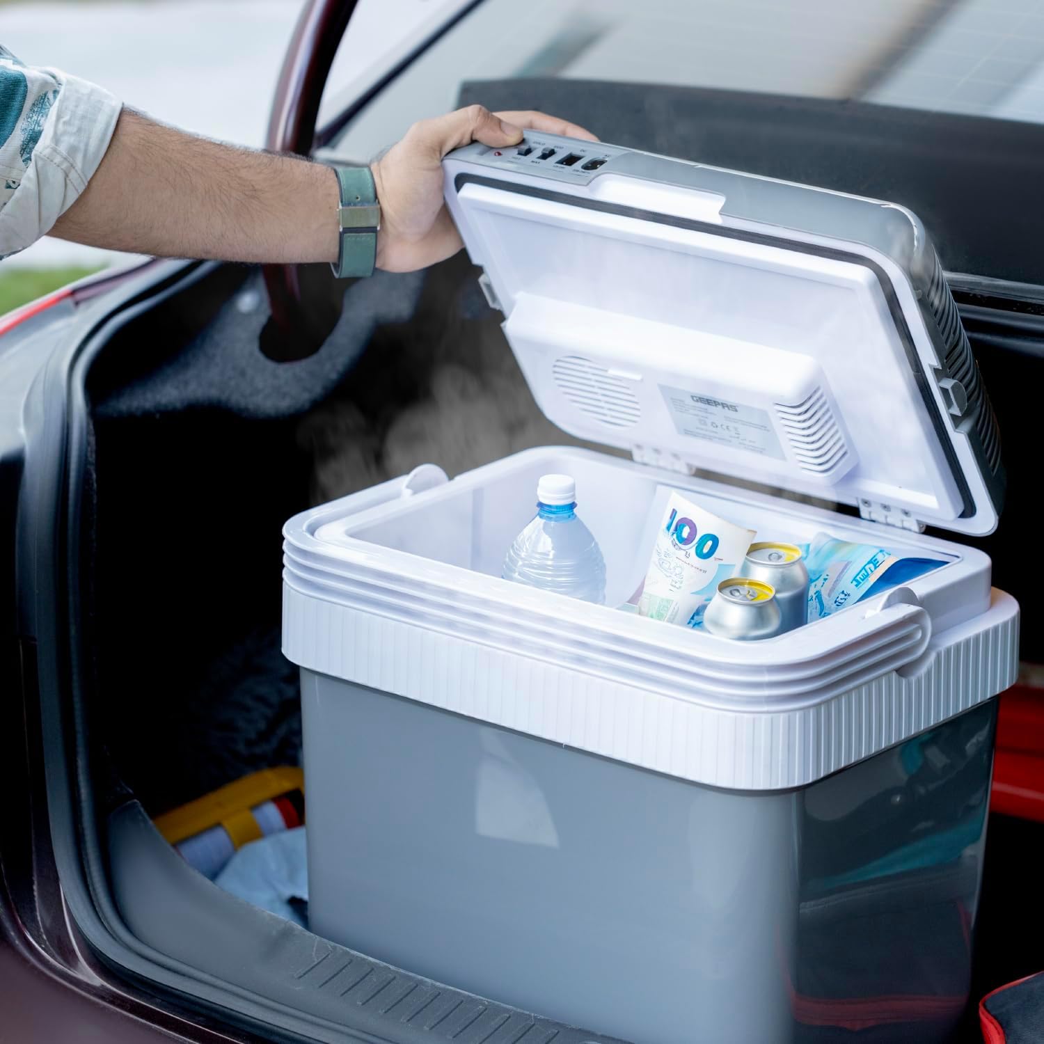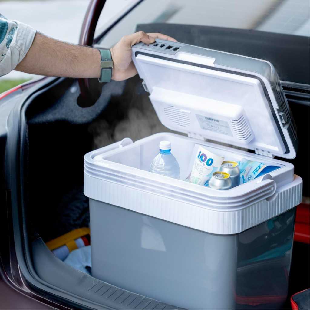 Key Features: Geepas Hot & Cold Car Fridge | 24L Easy to carry, Portable Mini Cooler & Warmer for Drinks | For Bedroom, Home, Caravan, Car | GCF63062. 24L MINI COOLER: This mini compact cooler is ideal for a bedroom, office or countertop. There’s plenty of space to fit drink cans, or a few favourite snacks within handy reach. STORE YOUR SKINCARE – Keep your drinks and snacks chilled to perfection, or even store your skincare and cosmetics in this versatile mini cooler. HOT OR COLD – Acts as a cooler or warming appliance for complete versatility. LIGHTWEIGHT & PORTABLE – The lightweight 5kg design, foldable carry handle and whispe,noise level make this cooler perfect for camping, caravan trips or family days out.