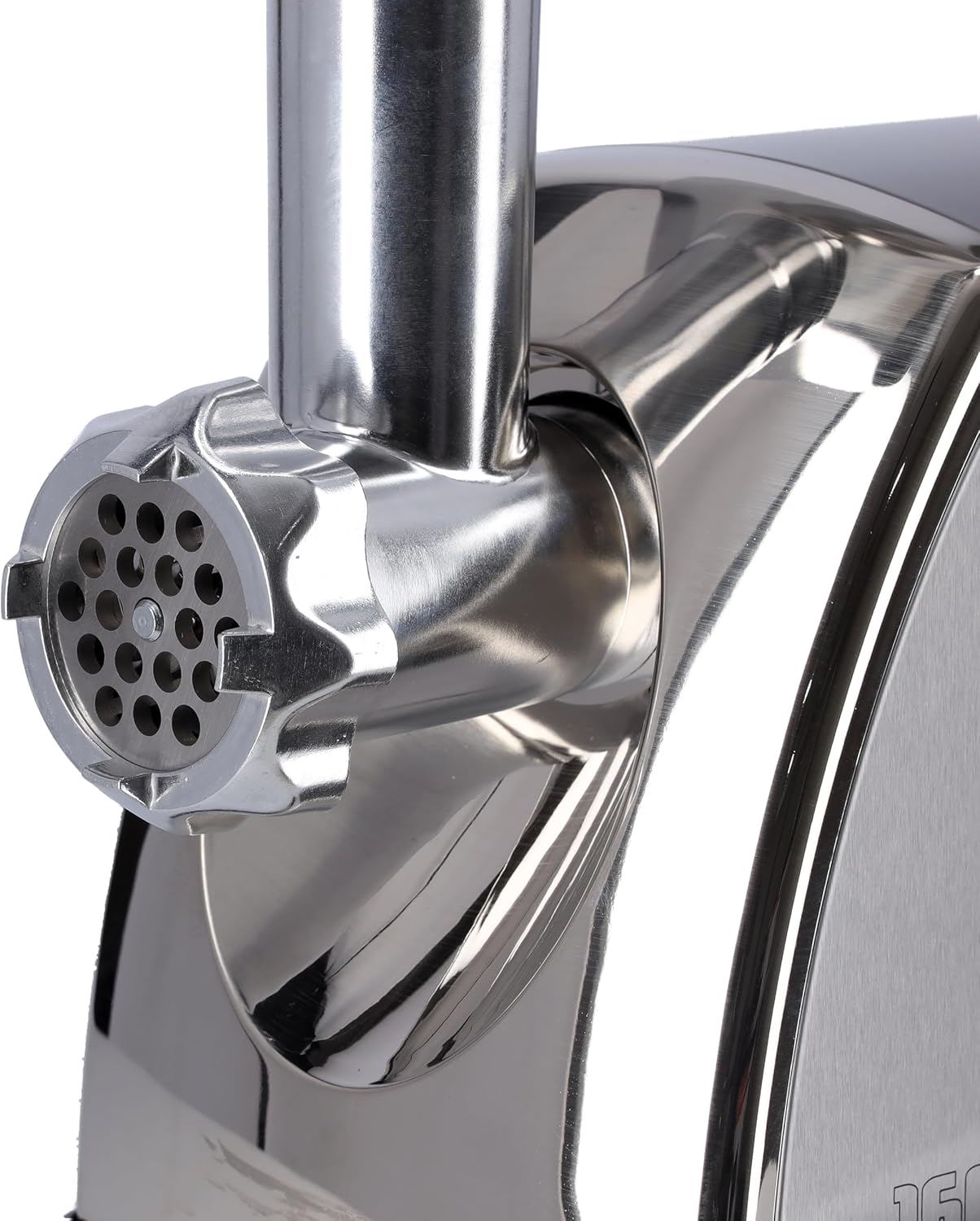 Key Features: 1. STAINLESS STEEL COMPONENTS – The housing and blades are made of high-quality stainless steel that ensures long and reliable operation of the electric meat grinder. The blades perfectly process the meat and do it in minutes. Other details of the head are made of aluminum with food oil which allows products not to stick to components. 2. 3 ACCESSORIES IN A SET – The kit of the meat mincer electric includes a sausage accessory, a kubbe accessory and a food pusher. This allows you to cook your homemade sausage and some stuff for it. In case the meat goes hard, you can use the food pusher. 3. REVERSE FUNCTION – If the electric mincer is stuck, you can solve this problem by using the special function R on the switch. The blades will begin to rotate in the opposite direction, and the product will exit through the top. If this does not help, clean the meat mincer, then turn it off and rinse with water. 4. CAPACITY 1KG/MIN – A large head volume allows you to make mince meat in just a few minutes. This opportunity will save your time. In just 1 minute you will have a ready kilo of minced meat with this electric grinder. 5. 2-YEAR WARRANTY – If the device breaks down or turns out to be faulty, you can return your money within 24 months after purchase. We try to do our things in such a way that no incidents will upset you.