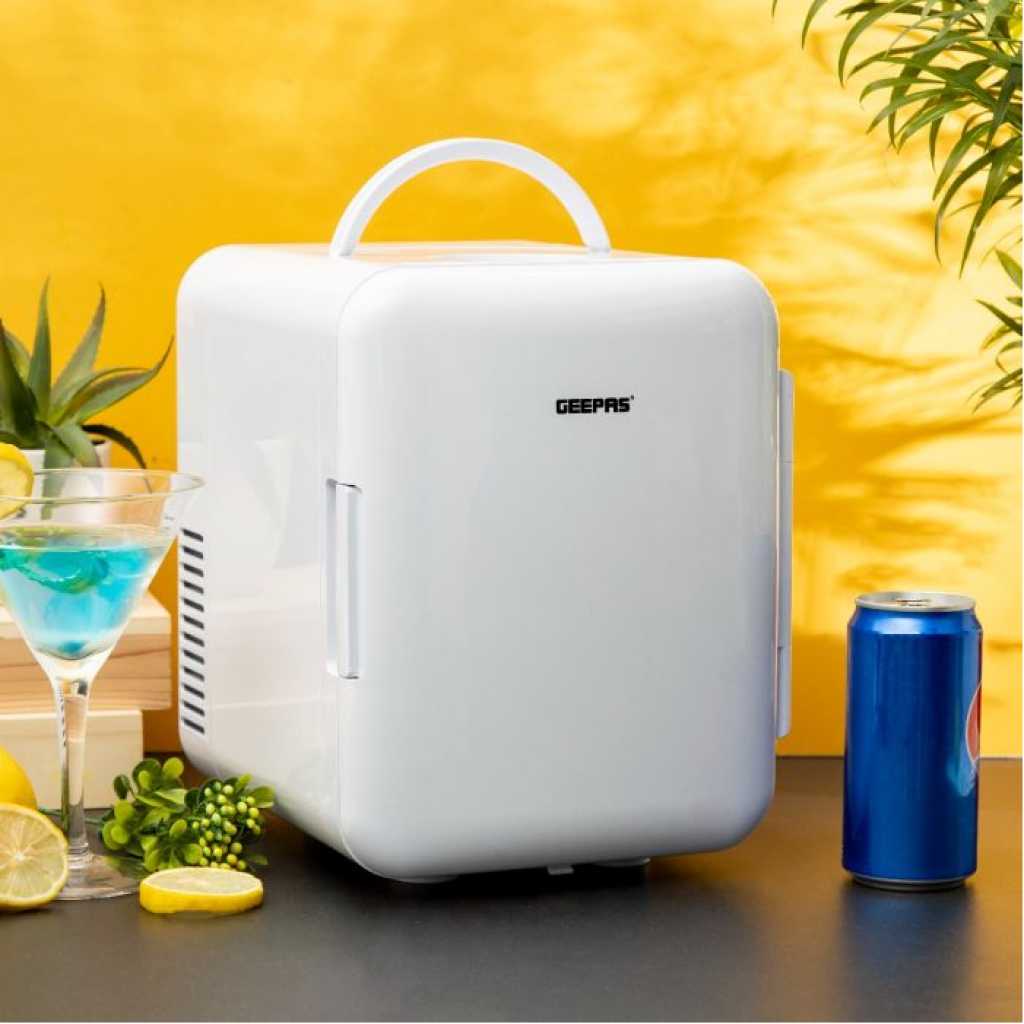 Key Features: Geepas Mini Refrigerator With Cold Or Warm Function GRF63043 Car & Home Refrigerator, 4L Normal & Silent Mode: GRF63043. The Geepas 4 L Mini Refrigerator has a semiconductor air cooling system with a capacity of 6*330 ml cans or 4*440 ml cans