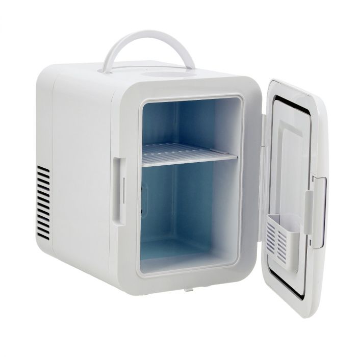 Geepas Mini Refrigerator With Cold Or Warm Function GRF63043 Car & Home Refrigerator, 4L Normal & Silent Mode: GRF63043. Geepas Mini Refrigerator is specially designed to fit neatly into smaller spaces and is ideal for your bedroom, home office and car. This appliance has a 4 L space to fit 6 x 330ml drink cans or 4 x 440ml cans. With its compact design, it won’t look out of place at your dressing table. You can store your skincare products and makeup in the cooler to keep them fresh for a long time. There’s even a handy pocket on the inner door, perfect for storing face masks. The unique semiconductor operation is energy-efficient, ultra-quiet, and 100% friendly. It will cool up to 15C below the indoor temperature. It has a cool and warm function with a cooling power of 48W and warming power of 40W. This compact refrigerator combines style with functionality, with a sleek white body, streamlined retro curves and chrome accents. The lightweight design lets you take your mini-refrigerator on the go, whilst the advanced fan technology delivers high performance. It is perfect for camping, caravanning and family day out. You can also operate your mini appliance as a warmer. The advanced thermoelectric system can heat up to 60C above the ambient temperature with a quick flick of a switch.