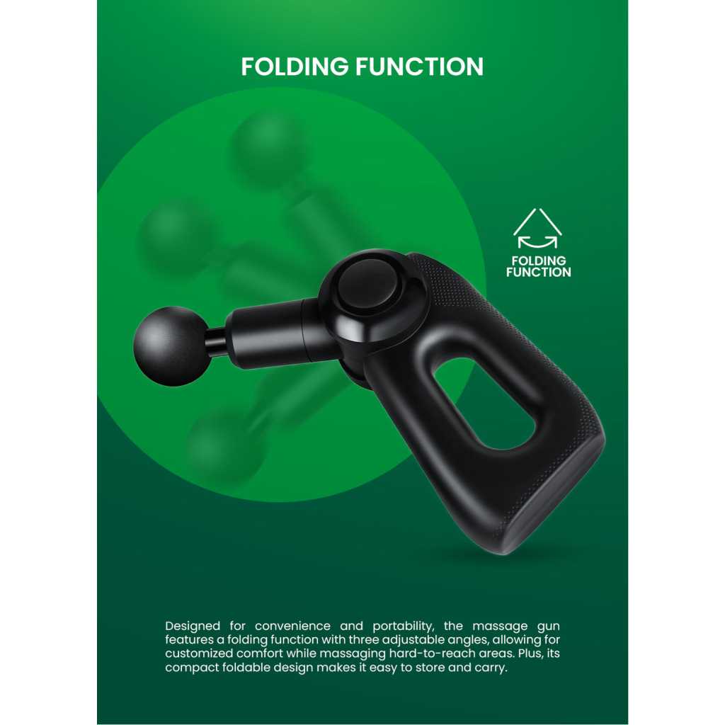 Key Features: Geepas Powerful Massage Gun- GM86092UK/ 5-Speed Function, LED Indicator, Folding Design with 3 Adjustable AnglesBlack, 2 Years Warranty Folding function 5 speed selection 3 Adjustablec angles LED indicator Effective massage brushes Low noiose with high effeciency