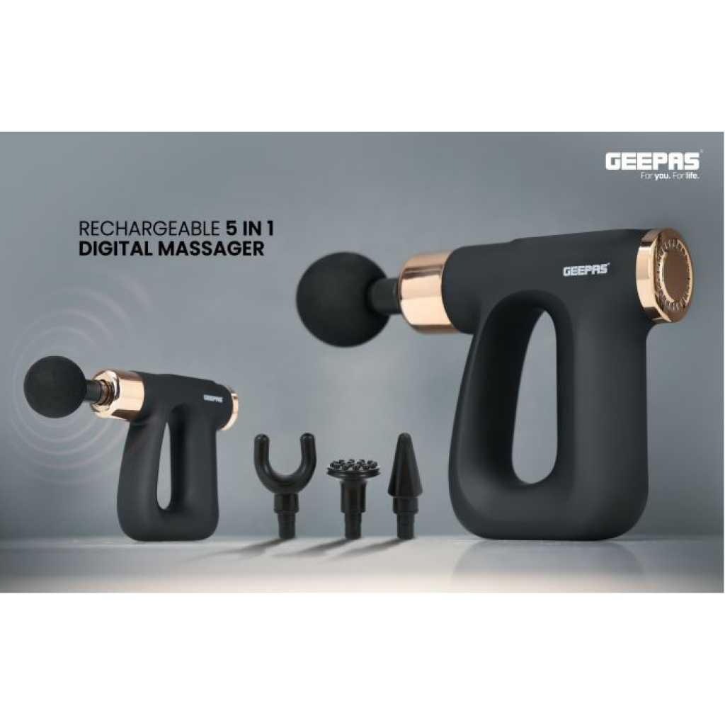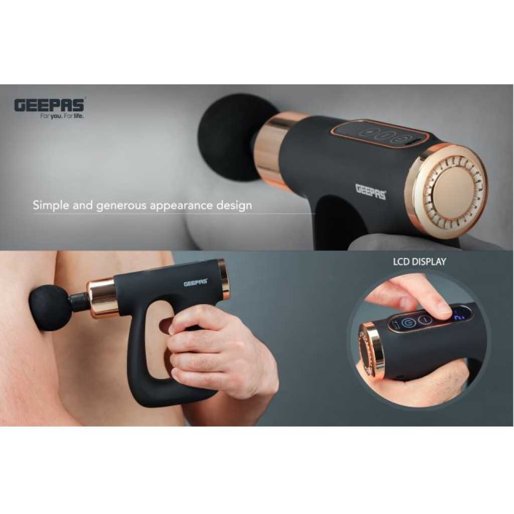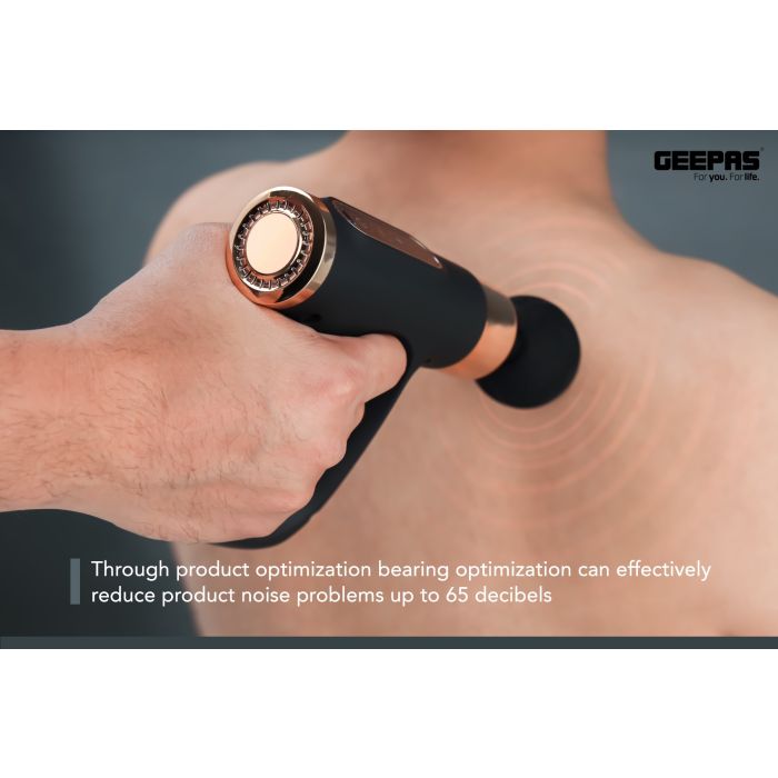 Key Features: GEEPAS Rechargeable 4-in-1 Digital Massager, LCD Display, GM86063, 32 Speed Setting, Portable Handheld Muscle Massager for Athletes, Muscle Soreness Relief. Rechargeable with USB cable, Simple and generous appearance design 4 massage head: Round ball type, U shape type, Flat type, Conical head LCD display and button design can reduce a series of problems caused by touch control the product has 32 speed(1800-3200 RPM) to adapt to different people’s sense of community. The equipment has deep penetration, which can relieve muscle spasm and nerve pain caused by exercise in short time Through product optimization, bearing optimization can effectively reduce product noise problems up to 65 decibels The use of flame retardant material in the head can effectively increase the life of the product and ensure the quality of the product Foolproof button design, simple operation, 15 minutes smart shutdown Battery:1800mAh 7.4V, INPUT: DC 5V, 2 years warranty