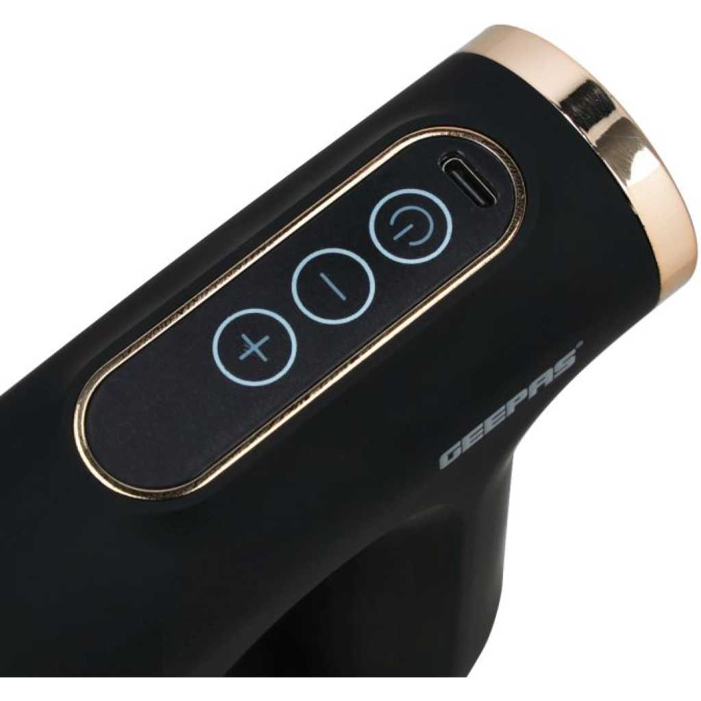 GEEPAS Rechargeable 4-in-1 Digital Massager, LCD Display, GM86063, 32 Speed Setting, Portable Handheld Muscle Massager for Athletes, Muscle Soreness Relief. Geepas Rechargeable 4-in-1 Digital Massager effectively reduces muscle stiffness and soreness, promotes blood circulation, and relaxes muscles deeply. This deep tissue massage gun provides 32 adjustable vibration mode meet different body parts massage needs. The powerful percussion muscle massage gun offers 4 interchangeable massage heads that provide care for each muscle. This deep tissue muscle massage gun is equipped with a high quality lithium battery of 1800mAh. The percussion massager with LCD touch screen can accurately display the speed and power balance so you don’t have to worry about power outages. The brushless noise reduction motor is equipped with a new generation of noise reduction technology to control the noise within 65dB. The ergonomically shaped handle can minimize external vibrations, and the sturdy non-slip silicone handle makes it easy to hold your hand massage gun. Enjoy a relaxing and comfortable personal massage. A perfect gift choice for you and your loved one. This massager comes with 4 attachment heads 1. Round Ball Type – Used for neck, back, buttock, and whole body muscle tissue 2. U Shape Type – Used for neck and waist spine Achilles tendon 3. Flat Type – Used for whole body slimming massage 4. Conical Head – Used for whole body muscle relaxation, especially around spine